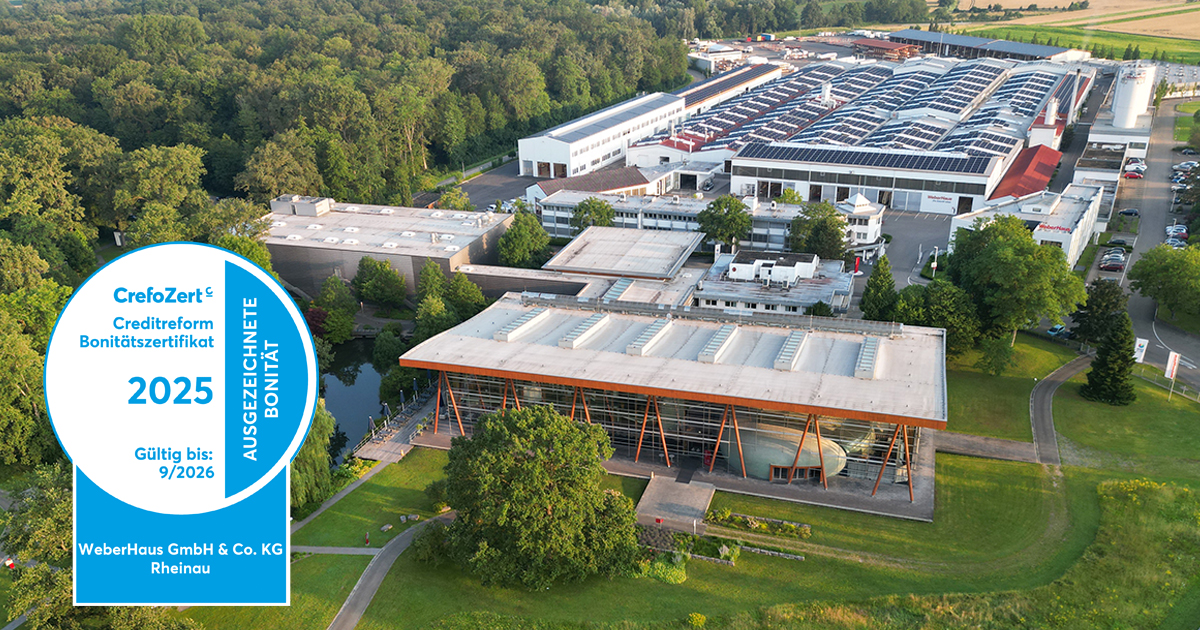 Zum 15. Mal wurde WeberHaus 2025 mit dem angesehenen CrefoZert-Zertifikat ausgezeichnet. Damit wird dem Familienunternehmen eine herausragende Bonität, wirtschaftliche Stärke und eine sichere Zukunft bestätigt. Creditreform prüfte WeberHaus sorgfältig, inklusive Insolvenzrisiko und Zahlungsfähigkeit. Das Ergebnis: Der Fertighaushersteller überzeugte in allen Bereichen. Nur etwa zwei Prozent der deutschen Unternehmen verfügen über diese renommierte Auszeichnung.