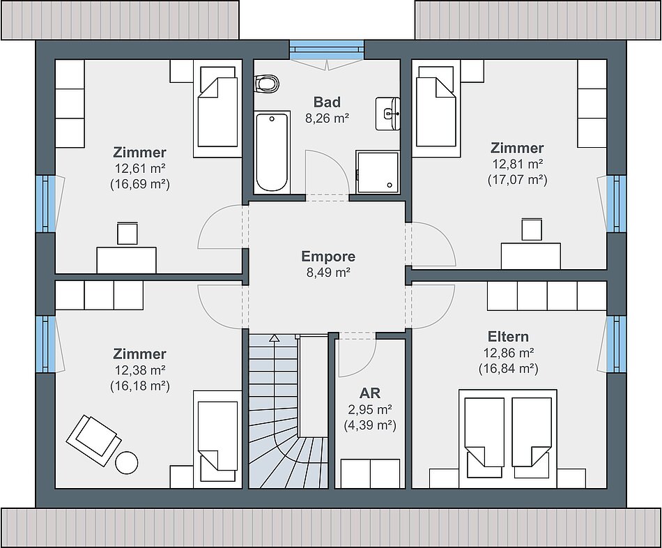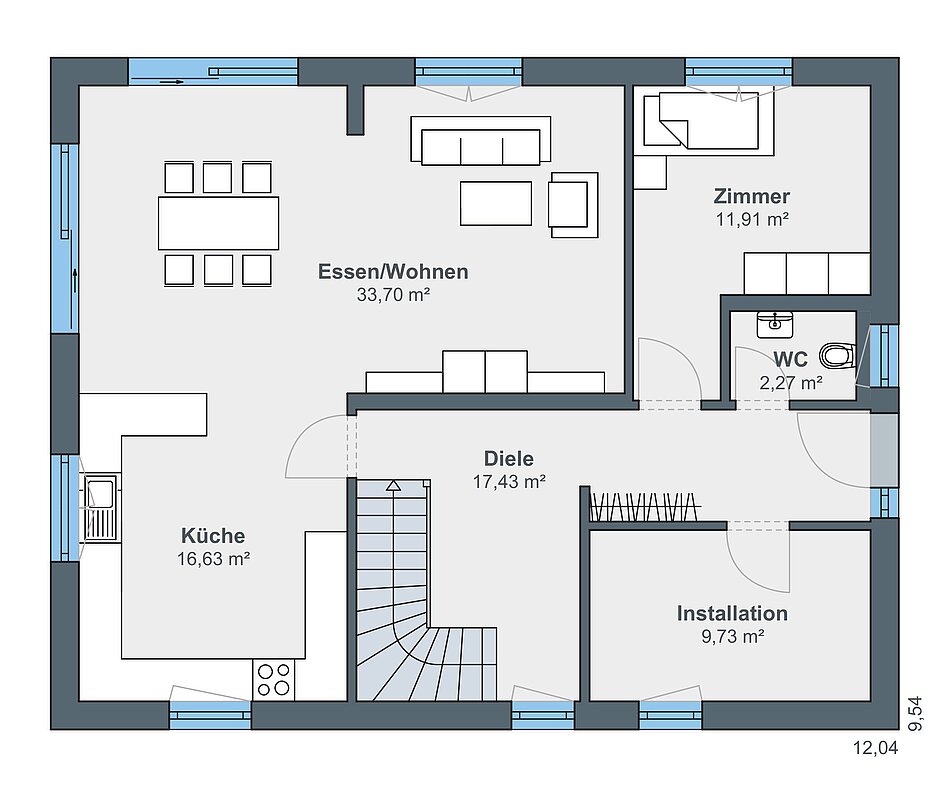 Ein Traumhaus in einer Traumgegend hat unsere Schweizer Baufamilie in den Walliser Bergen verwirklicht. Mit dem Materialmix an der Fassade von Putz und Holz sowie einem dritten Giebel erhält das Haus in Anlehnung an die Baureihe Balance eine individuelle Note. Einen schönen Kontrast zum Holz bildet die eher kühle Farbwahl der Dachziegel.