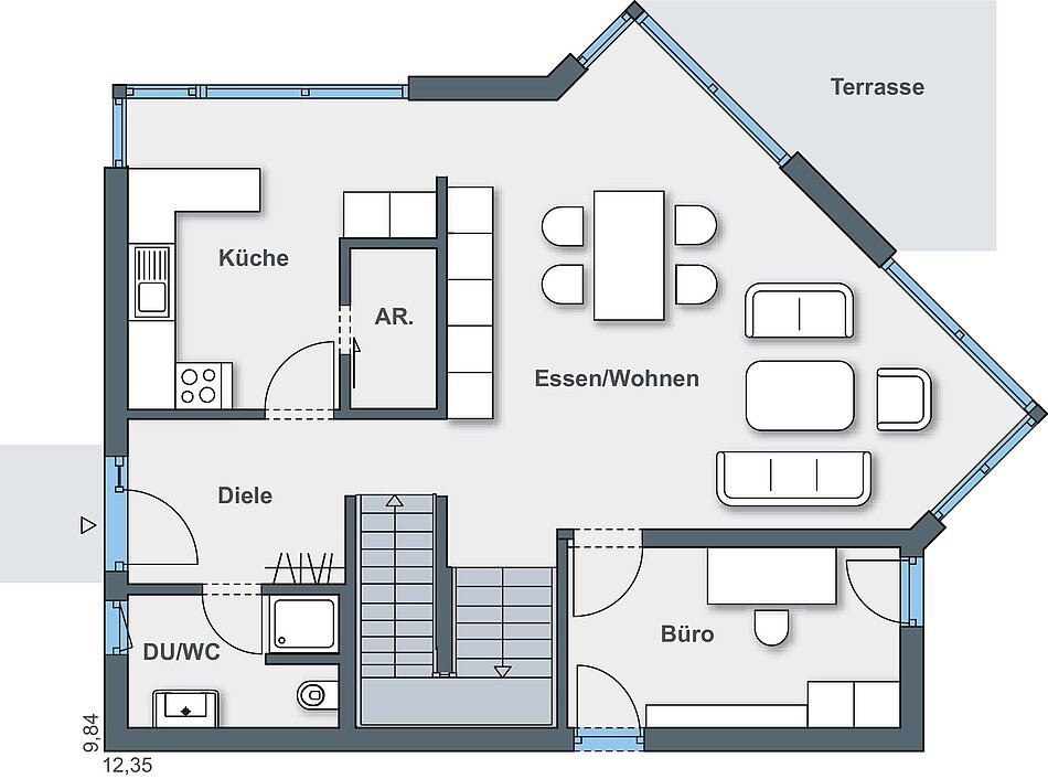 Dieses Haus besticht durch seine geraden Linien, ohne auf die eine oder andere Raffinesse zu verzichten. Sowohl für den Innen- als auch für den Außenbereich ergeben sich interessante Wohnmöglichkeiten durch die individuelle Grundrissgestaltung. Sie haben außergewöhnliche Wünsche für Ihren Hausbau? Kein Problem, unsere Bauberater helfen Ihnen gerne weiter, um die individuellen Vorstellungen von Ihrem Traumhaus zu verwirklichen.