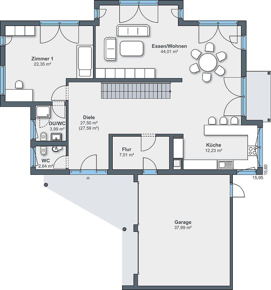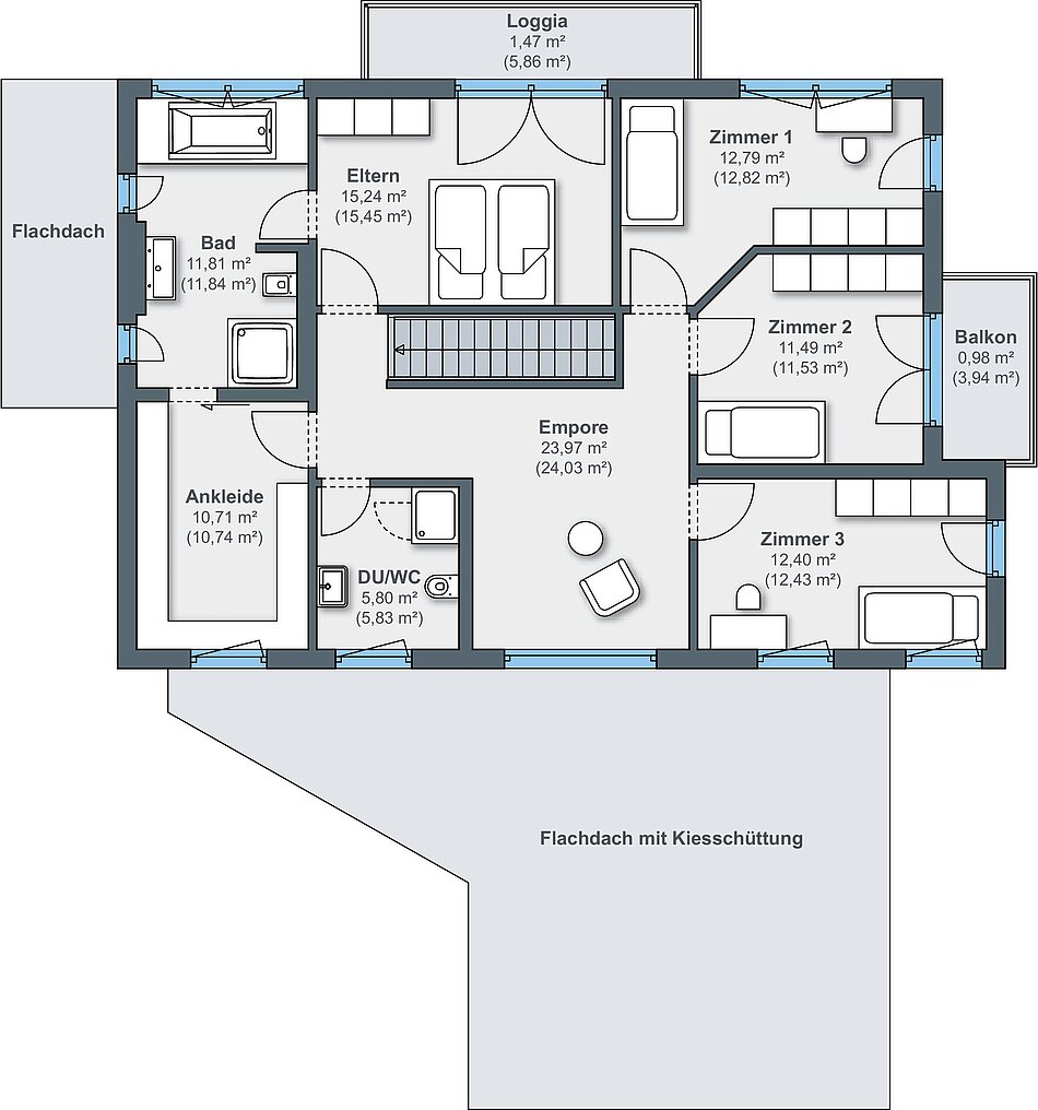 Im eigenen Zuhause möchte man auf nichts verzichten. Das dachten sich auch die Bauherren dieses frei geplanten Weber-Hauses und erfüllten sich und ihren Kindern den Wunsch nach einem maßgeschneiderten Eigenheim. Während das Erdgeschoss der kommunikative Mittelpunkt des Hauses ist, hat jedes Familienmitglied im Dachgeschoss seinen eigenen Bereich. Die warme Jahreszeit kann die Baufamilie auf mehreren Balkonen und einer riesigen Terrasse genießen. Zum Abkühlen und Spaß haben lädt ein großzügig angelegter Pool ein, der für die Kinder ein ganz besonderes Highlight ist. Die Fassade des Hauses wurde im Farbton Weiß verputzt. Graue Elemente schaffen einen gelungen Kontrast und ein versetztes Pultdach verleiht dem Haus das gewisse Etwas.