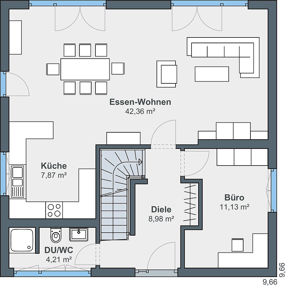 Für die Bauherrenfamilie stand immer schon der Wunsch nach einem ökologischen und energieeffizienten Haus im Vordergrund. So fanden sie bei WeberHaus den idealen Partner für ihr Unterfangen. „Mit viel Holz zu leben, das war immer unser Traum. Nun haben wir es immer um uns, in Form der Verschalung, der Bodenbeläge und natürlich der Wand an sich“, erzählt der Bauherr. Der Nachwuchs freut sich über so viel wohngesunde Natürlichkeit und die Eltern wissen, dass die Photovoltaik-Anlage auf dem Satteldach ihres individuell geplanten Hauses ein echtes Energiewunder ist.