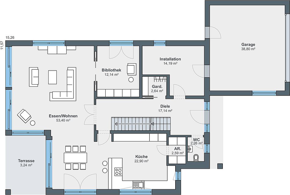 11,57 x 15,26 m