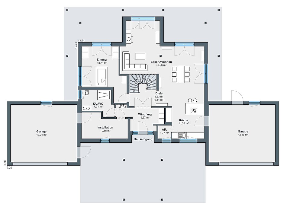 12,64 x 13,44 m