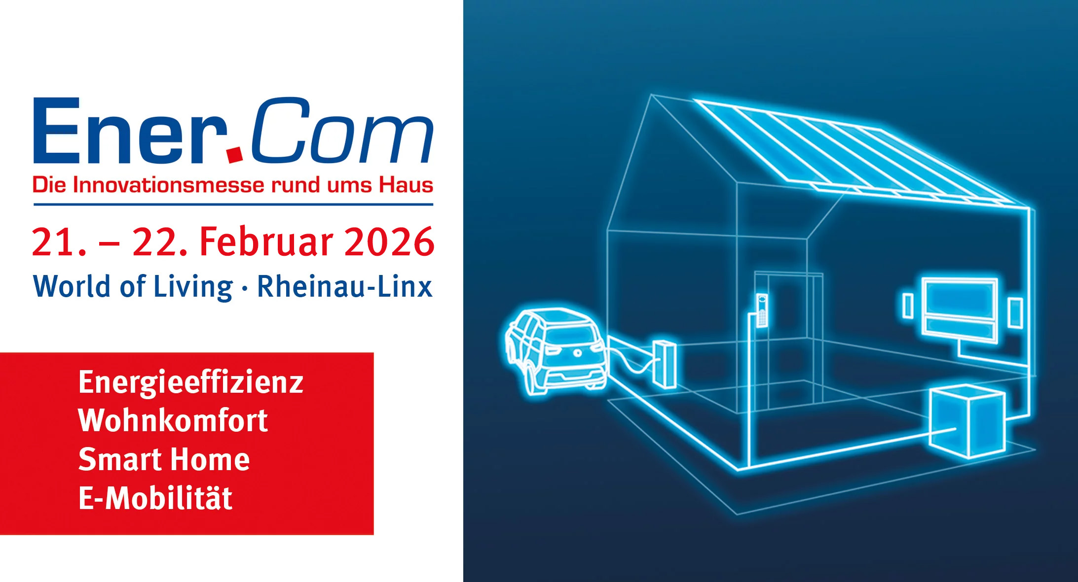 Am 21. und 22. Februar 2026 von 10:00 bis 18:00 Uhr öffnet die World of Living die Türen zur Innovationsmesse Ener.Com. Erleben Sie die breite Themenvielfalt rund um Bauen, Wohnen und Modernisieren in der einmaligen Atmosphäre der World of Living.