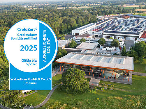 Zum 15. Mal wurde WeberHaus 2025 mit dem angesehenen CrefoZert-Zertifikat ausgezeichnet. Damit wird dem Familienunternehmen eine herausragende Bonität, wirtschaftliche Stärke und eine sichere Zukunft bestätigt. Creditreform prüfte WeberHaus sorgfältig, inklusive Insolvenzrisiko und Zahlungsfähigkeit. Das Ergebnis: Der Fertighaushersteller überzeugte in allen Bereichen. Nur etwa zwei Prozent der deutschen Unternehmen verfügen über diese renommierte Auszeichnung.