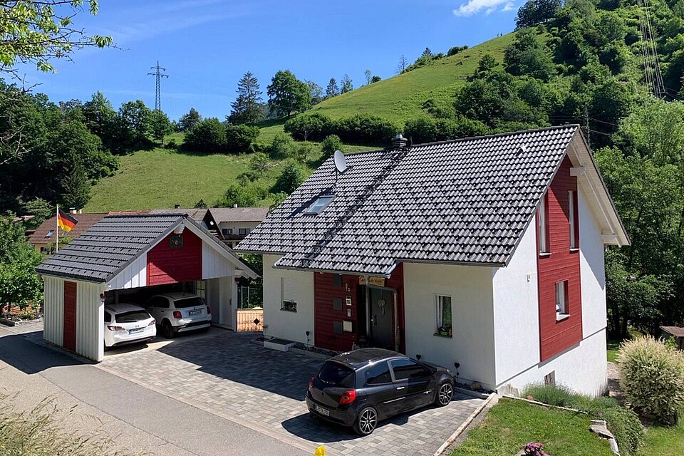 Unser Haus liegt im Südschwarzwald. Wir haben direkt am Bach unser Häuschen gebaut. Da wir ein sehr großes Grundstück haben, haben wir das entsprechend ausgebaut. Wir sind sehr fußballverrückt, weshalb wir uns selbst einen kleinen Fußballplatz gebaut haben, der aus Kunstrasen besteht. Unsere zwei Kinder spielen sehr viel Fußball mit ihren Freunden. Da es im Dorf keinen Bolzplatz gibt, spielen sehr viele Dorfkinder bei uns. Das Neuste, das wir uns gebaut haben, ist unser Paradise und zwar eine "Strand-Bar". Auf die Idee sind wir gekommen, da wir wegen der Corona-Pandemie nicht in Urlaub fliegen können. Wir haben den Strand zu uns geholt! ;-) Unser Haus ist ein richtiger Hingucker. Bei uns führt ein sehr befahrener Radweg- und auch Wanderweg vorbei. Viele halten an und schauen sich unser Paradies an. Wir sind im Landkreis Lörrach durch unser tolles Grundstück und unser WeberHaus sehr bekannt.