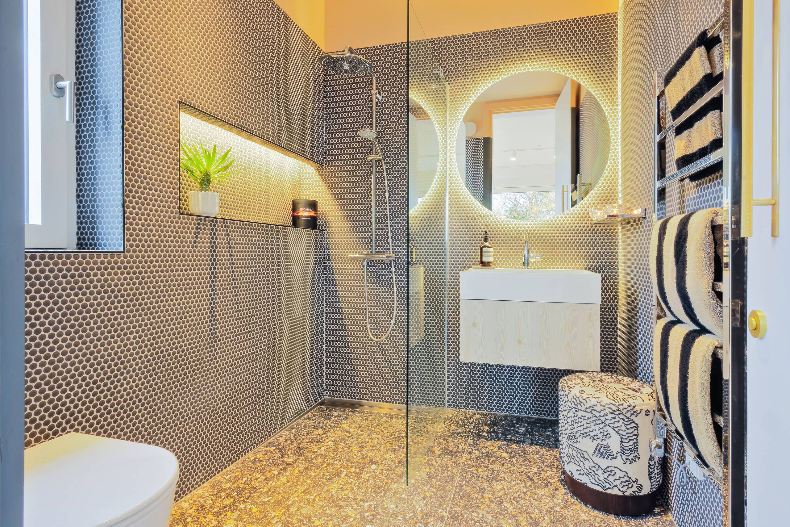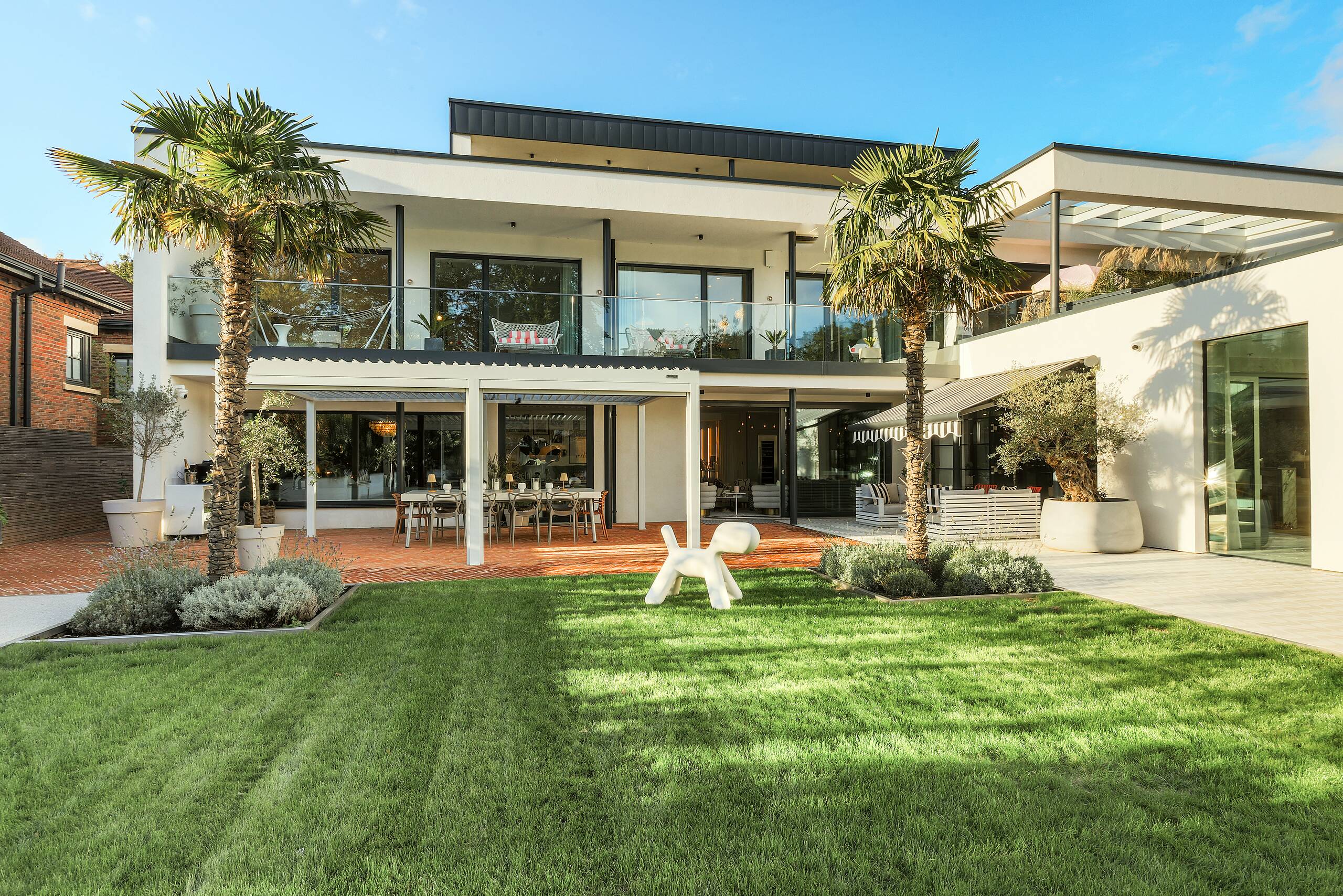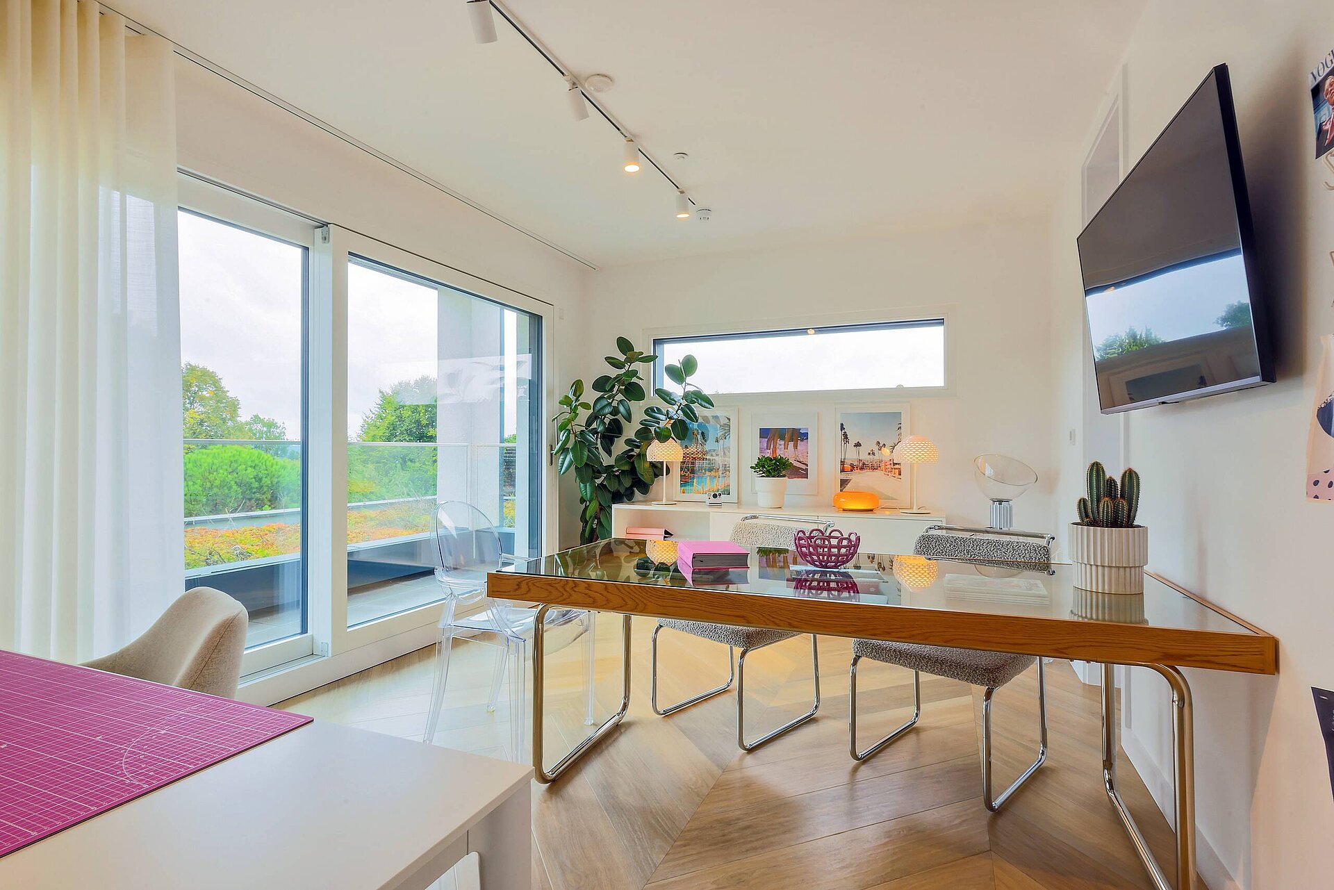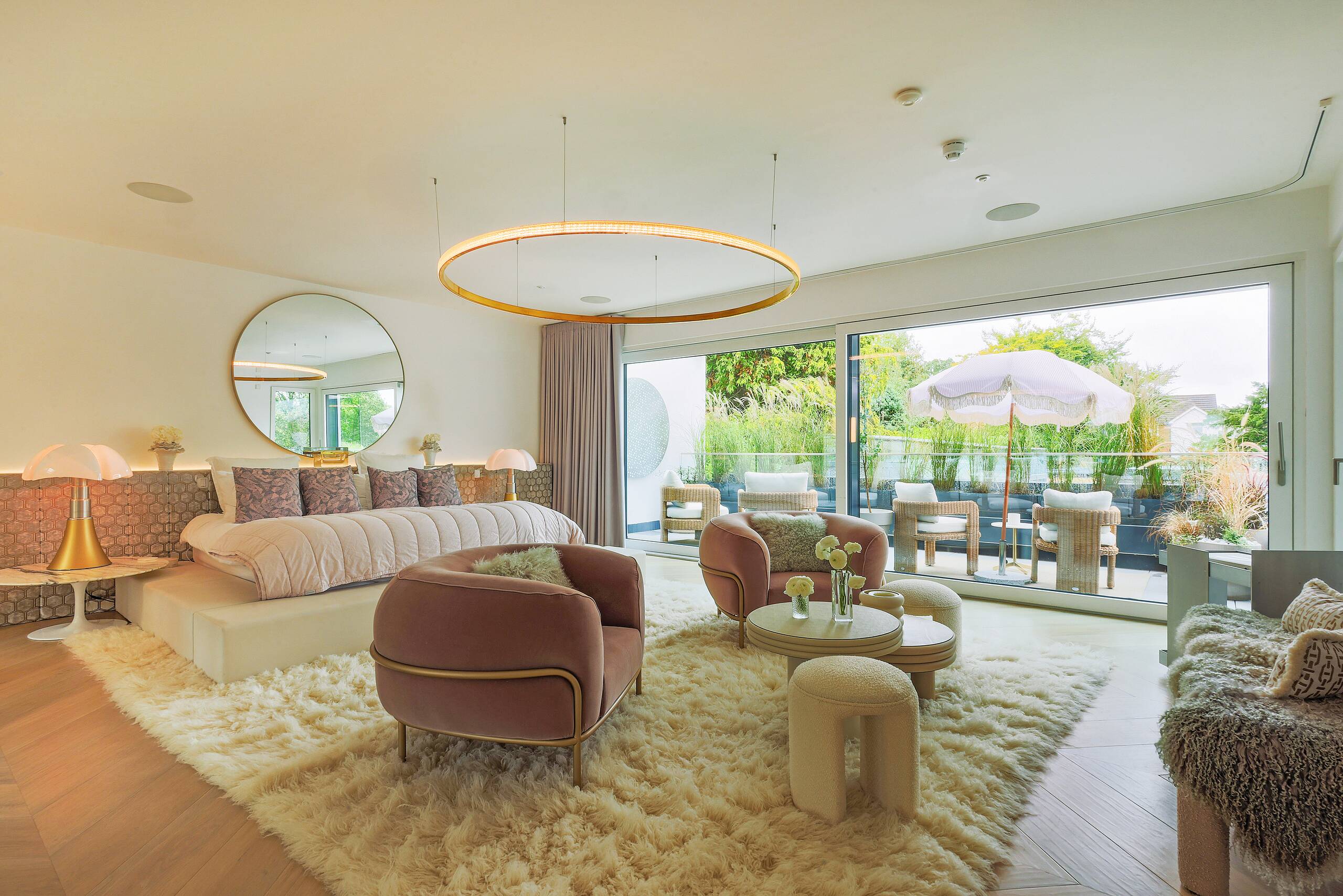 Ein besonderes Highlight ist das separate Pool-Haus, das durch eine gläserne Verbindung mit dem Wohnhaus verbunden ist. Die klare Formensprache setzt sich hier fort – großzügige Fensterfronten lassen viel Tageslicht herein und öffnen den Blick auf den Garten. Gemeinsam bilden Wohn- und Pool-Haus eine harmonische Einheit, die modernes Design, Wohlfühlatmosphäre und nachhaltige Bauweise perfekt vereint.