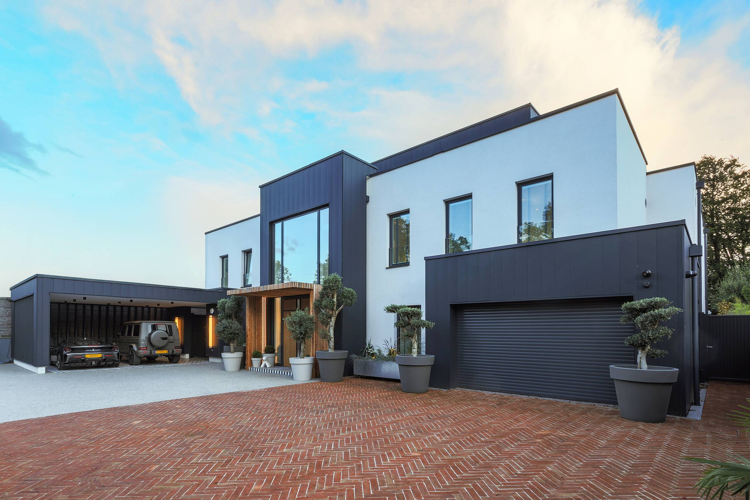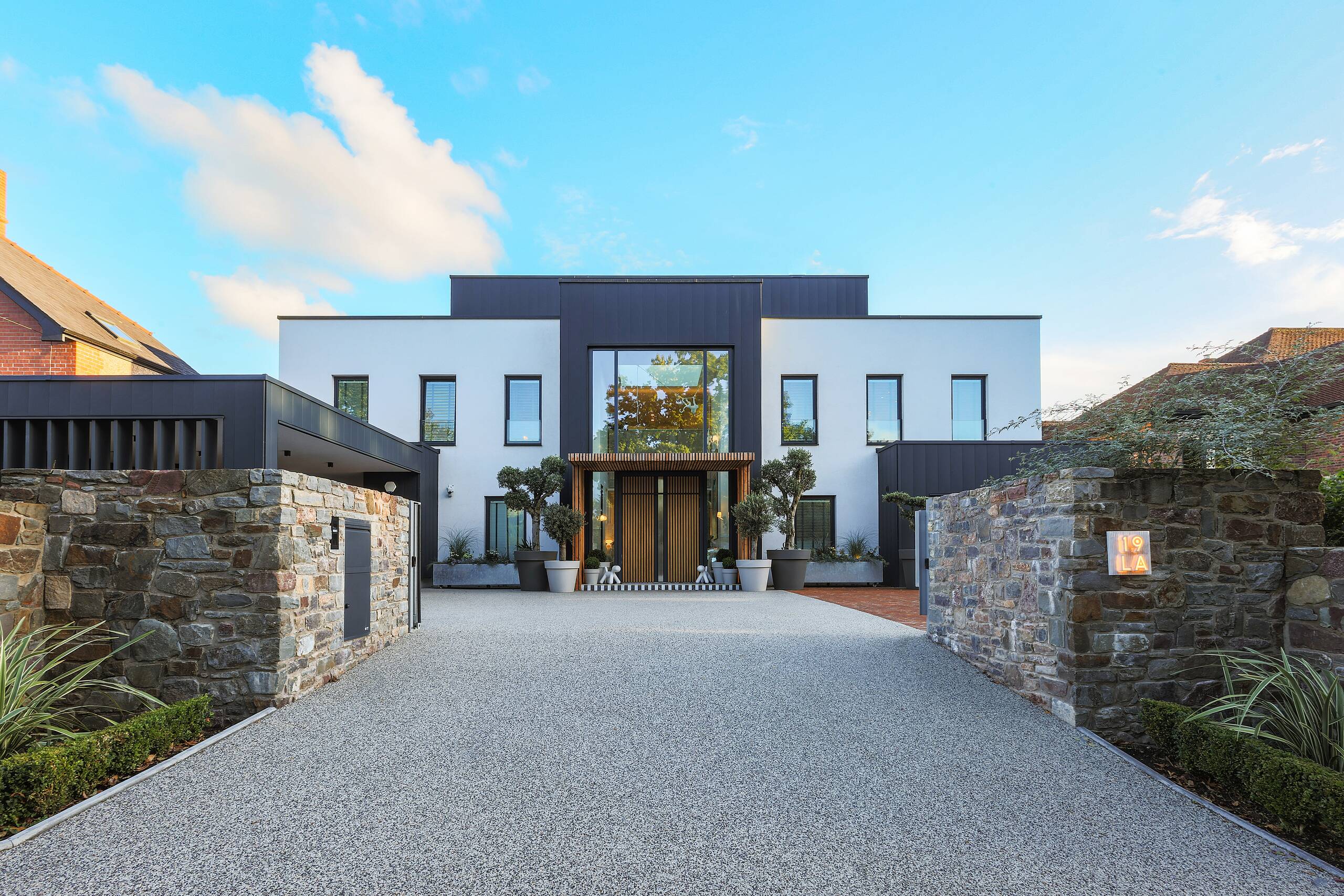 Inmitten eines gewachsenen Wohngebiets erhebt sich dieses moderne Einfamilienhaus als eleganter Kontrast zu den traditionellen Nachbarhäusern. Klare Linien, großzügige Glasflächen und die harmonische Verbindung von Holz und Putz verleihen dem Gebäude eine zeitlose Architektur. Die durchdachte Fassadengestaltung betont die Offenheit und schafft einen fließenden Übergang zwischen Innen- und Außenraum.