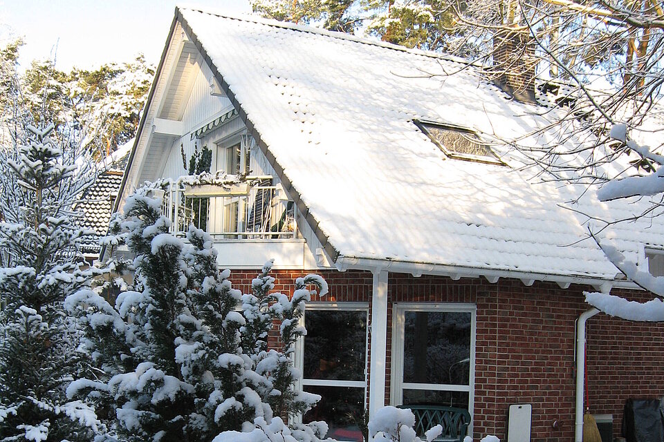 Wir haben den Haustyp Twenty Five etwas abgewandelt, sodass der Balkon nicht nur ein kleines Dreieck ist, sondern trapezförmig. Um den Raum weiterhin symmetrisch zu gestalten, wurde eine Wand etwas verschoben. Dadurch wird im Inneren viel Platz in allen Etagen gewonnen. Das Dachgeschoss ist für sich abgeschlossen, die Außentreppe ermöglicht den Zutritt zu den Wirtschafts- und Versorgungsräumen. So ist auch eine Fremdvermietung möglich. Im Dachgeschoss haben wir einen großen Wohn-Essbereich mit offener Küche und offenem Giebel. Der übrige Bereich ist in zwei miteinander verbundene Schlafräume aufgeteilt; einer davon mit begehbarem Schrank. - Wir wohnen jetzt 20 Jahre hier und mussten bis jetzt noch keine Reparaturen vornehmen. Als Niedrigenergiehaus ist es immer warm. Wir müssen nur wenig heizen. Wir sind insgesamt sehr glücklich hier!