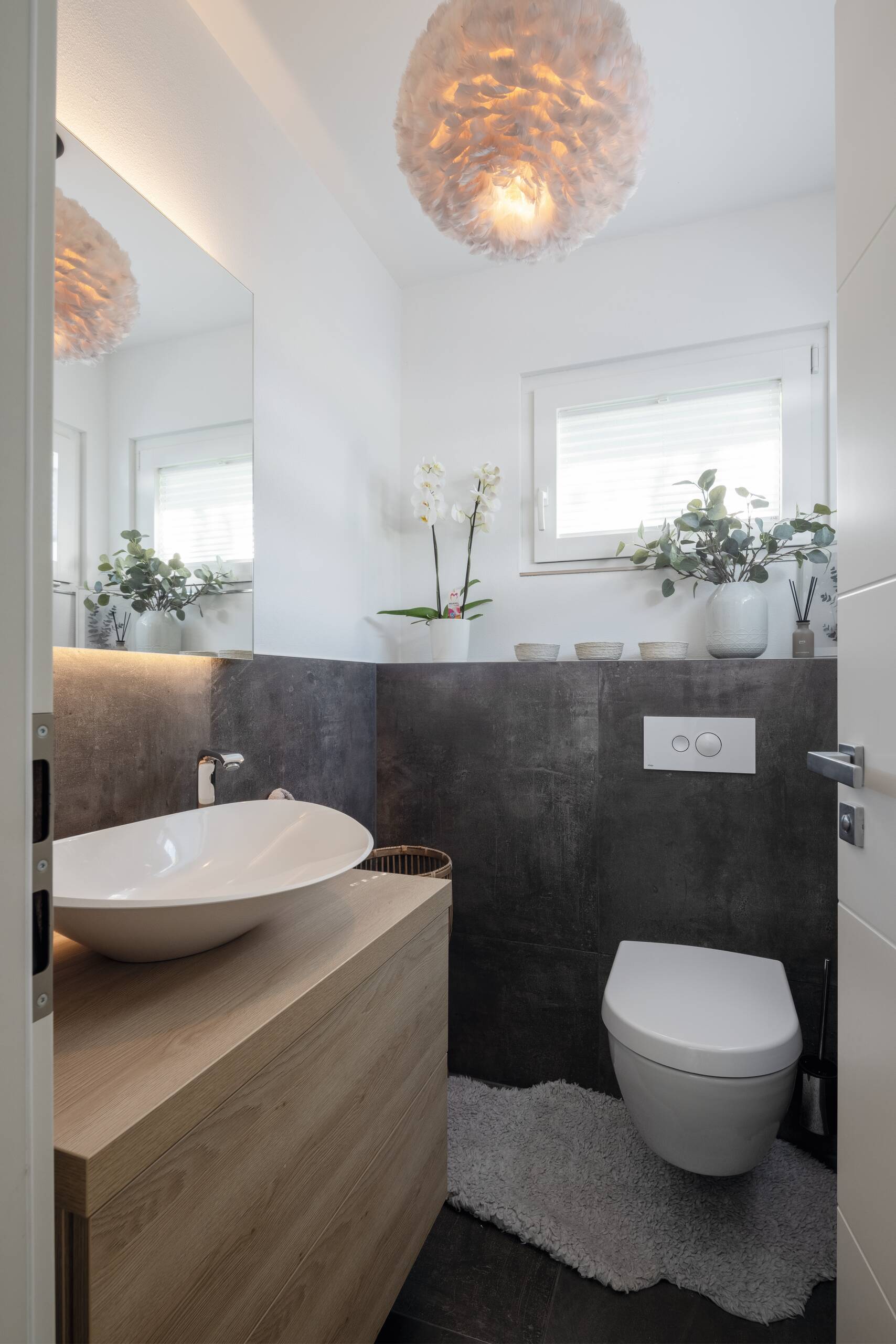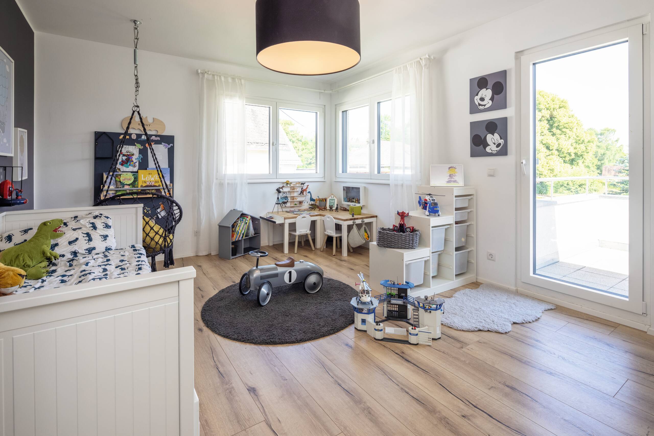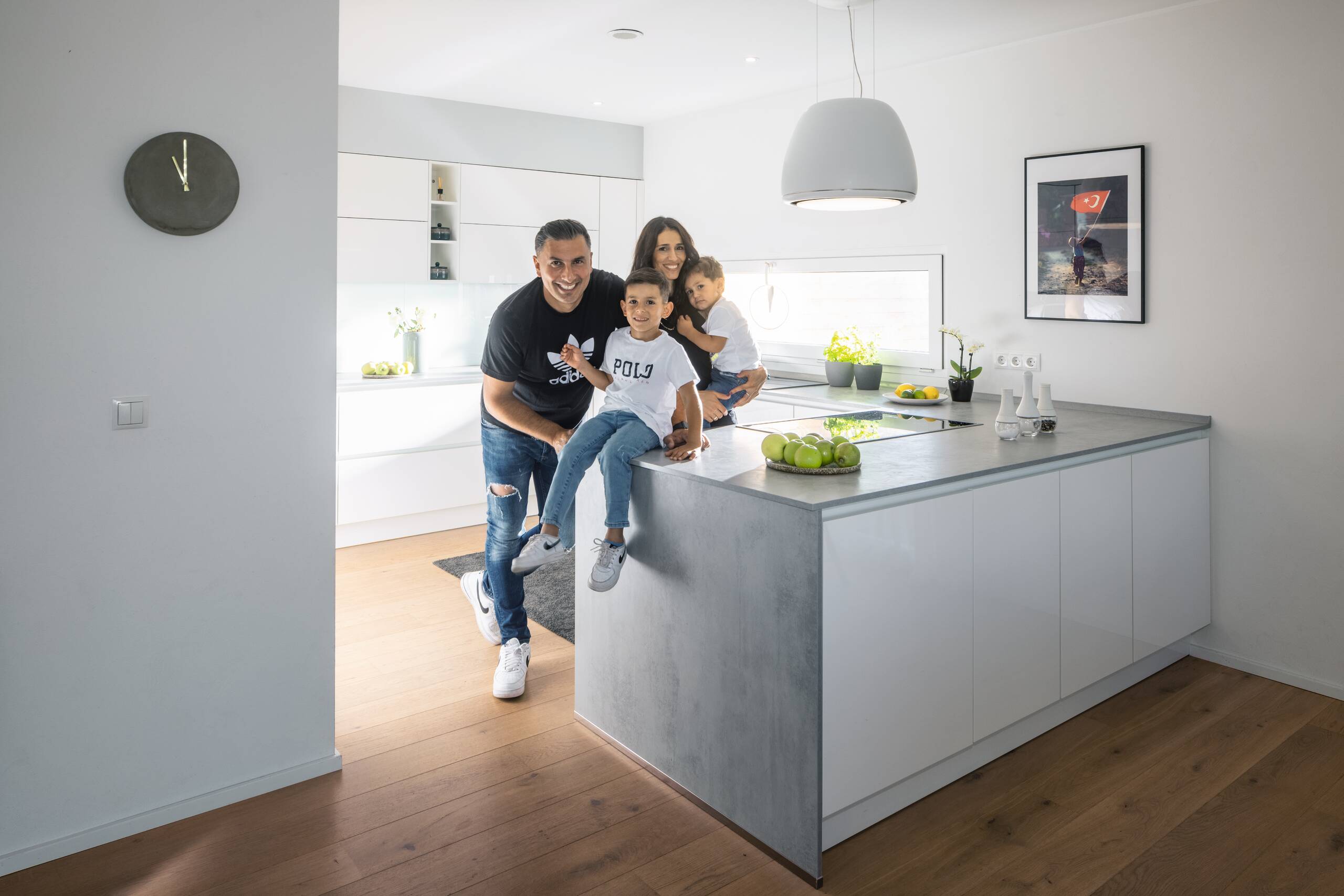 Die Stadtvilla mit rund 150 Quadratmeter Wohnfläche und einem Zeltdach basiert auf der Baureihe CityLife. An das zweigeschossige Einfamilienhaus grenzt eine Garage mit direktem Zugang zum Haus. Hier befindet sich auch ein Teil der innovativen Energietechnik, die bei diesem Kundenhaus als Pilotprojekt umgesetzt wurde: Das picea-System von HPS Home Power Solution. Dabei handelt es sich um ein Kompaktgerät zur ganzjährigen autarken Energieversorgung. Die Speicheranlage wandelt nicht sofort genutzten Strom in Wasserstoff um.