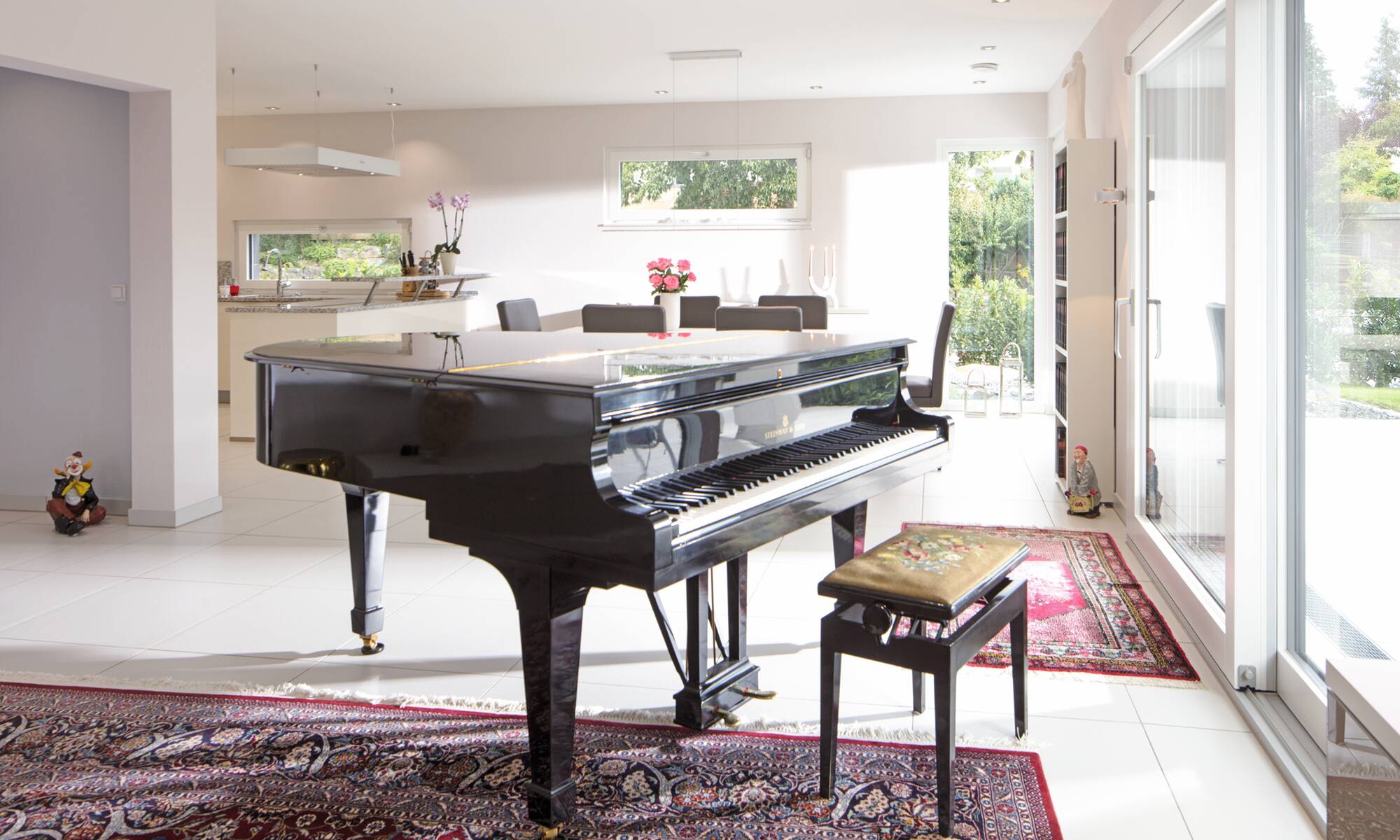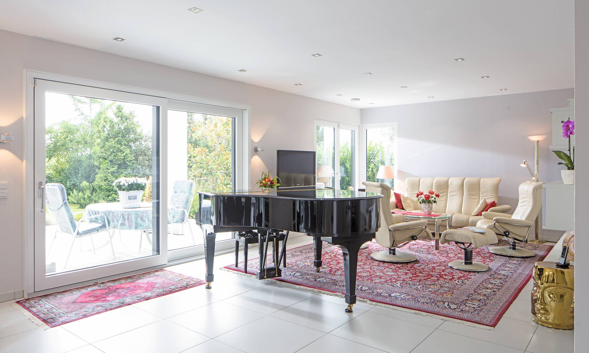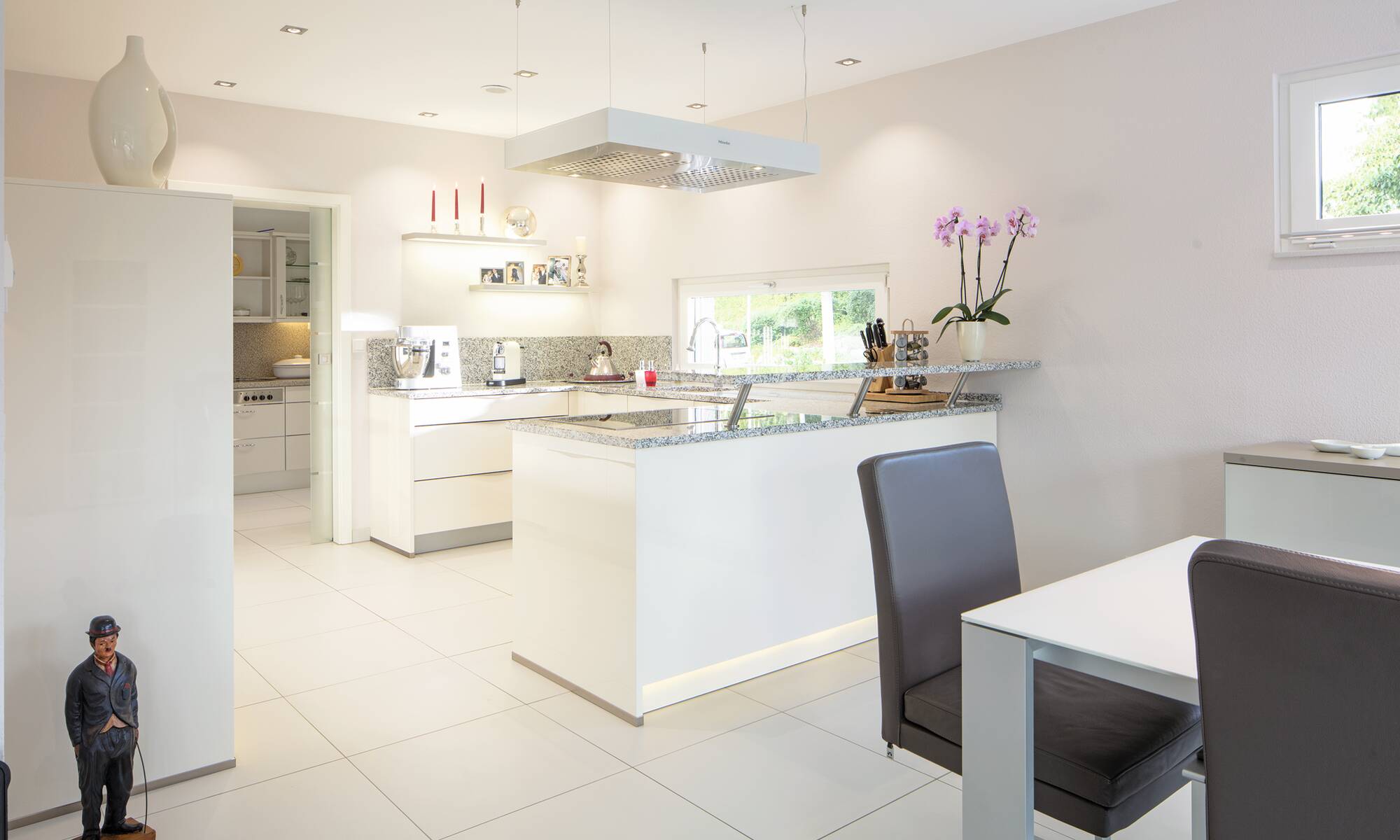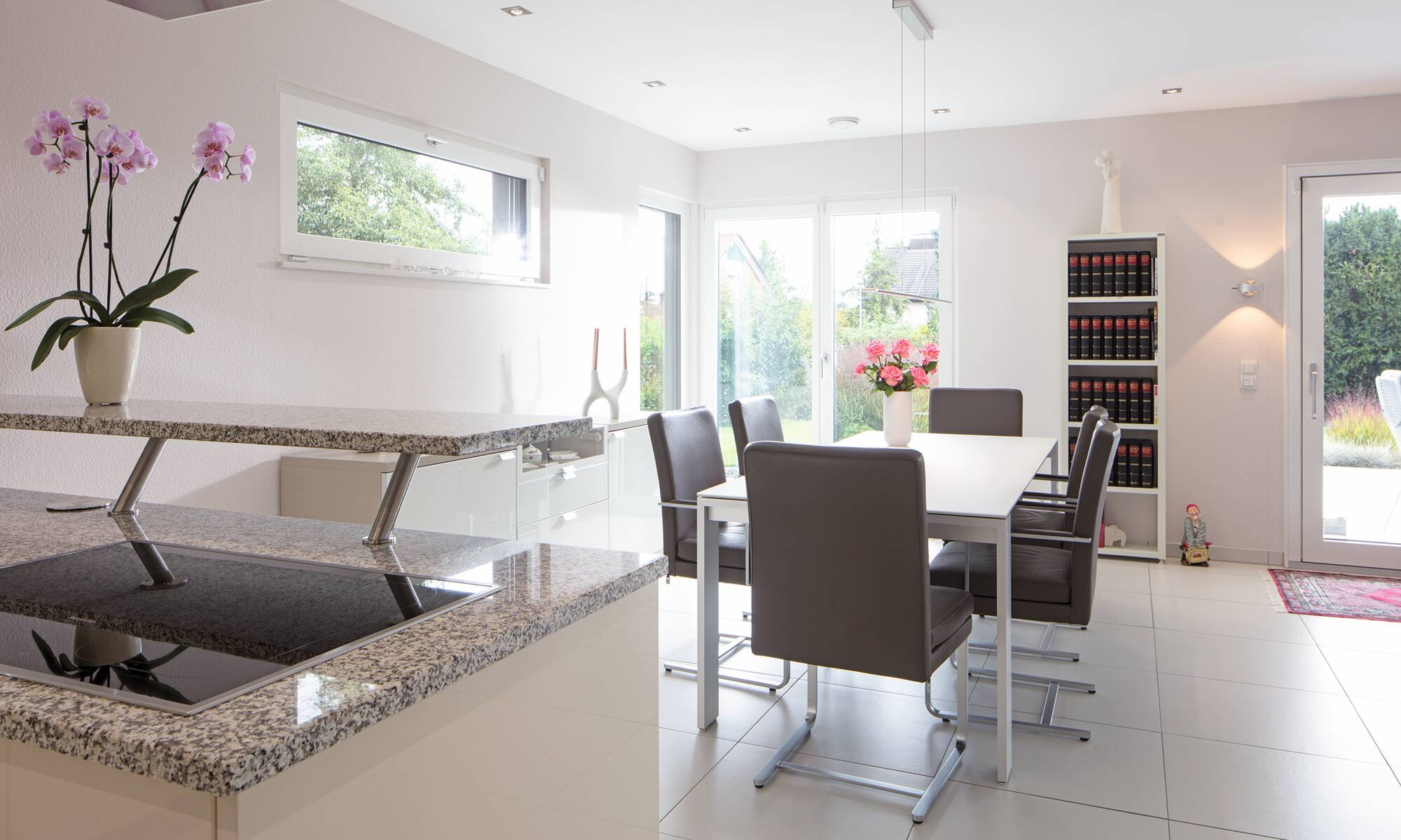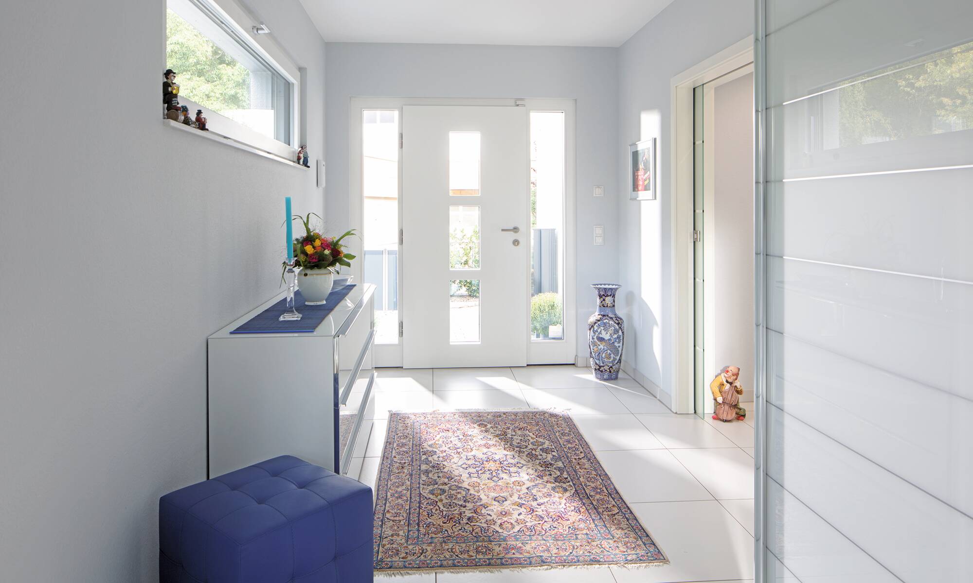 Das Ehepaar Paulsen hat ihr Traumhaus in der Baureihe CityLife entdeckt. „Wir freuen uns jeden Tag aufs Neue, in diesem komfortablen und schönen Haus wohnen zu können“, schwärmen die Hausbesitzer. Das Stadthaus mit seinen zwei Vollgeschossen und dem Walmdach bietet eine Wohnfläche von rund 220 Quadratmetern.Hinzu kommt ein Weberith-Keller. Farbige Akzente und Fensterrahmen in Grau lockern die ansonsten weiße Außenfassade auf. Passend dazu haben sich die Hausbesitzer für graue Dachziegeln entschieden.