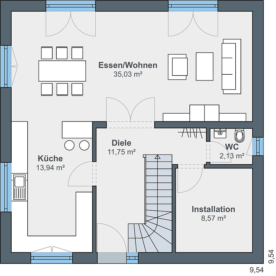 9,54 x 9,54 m