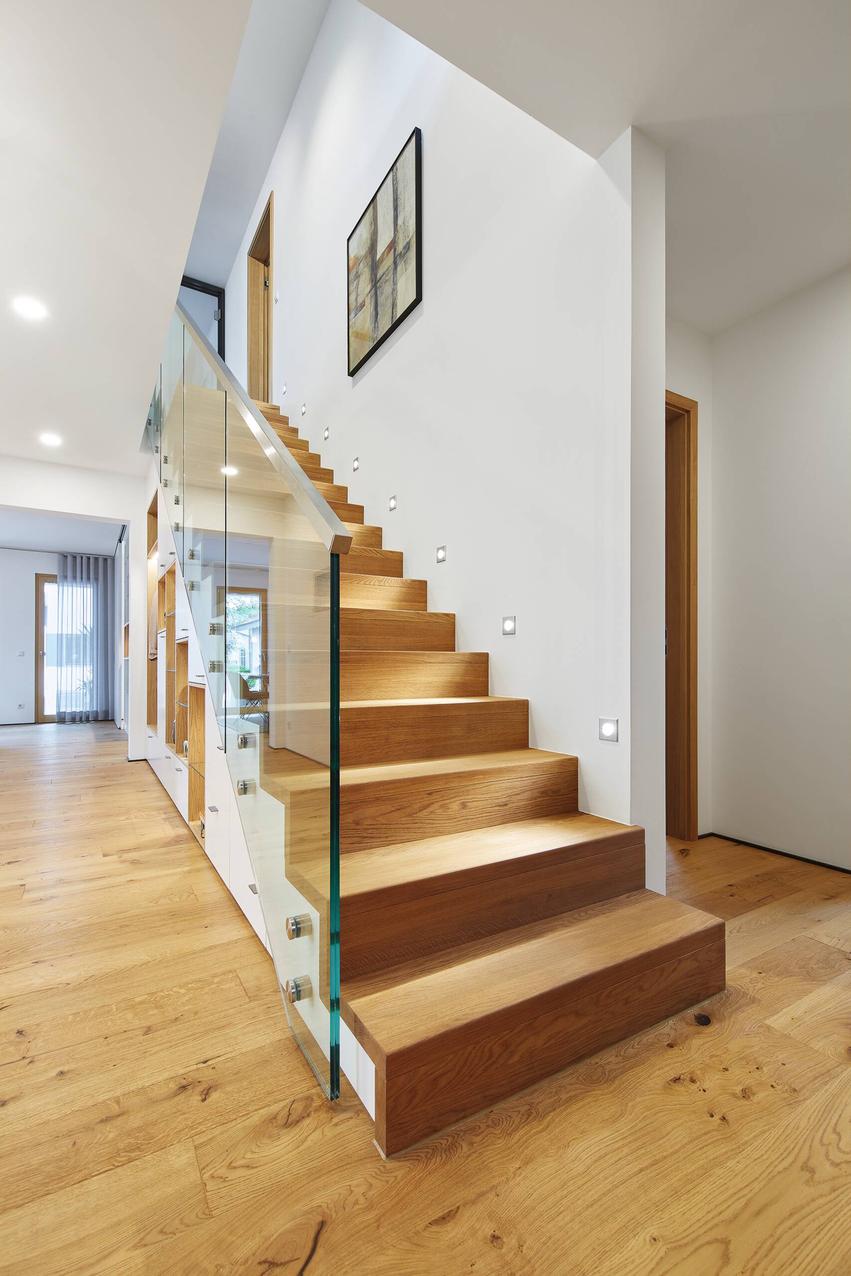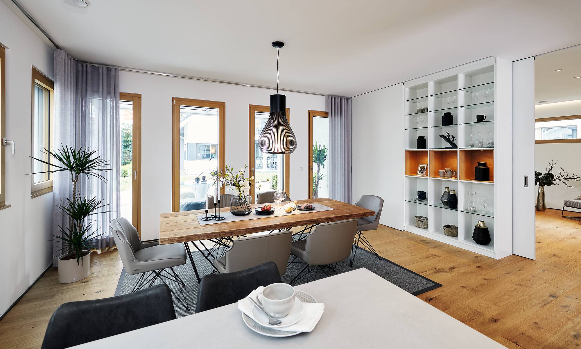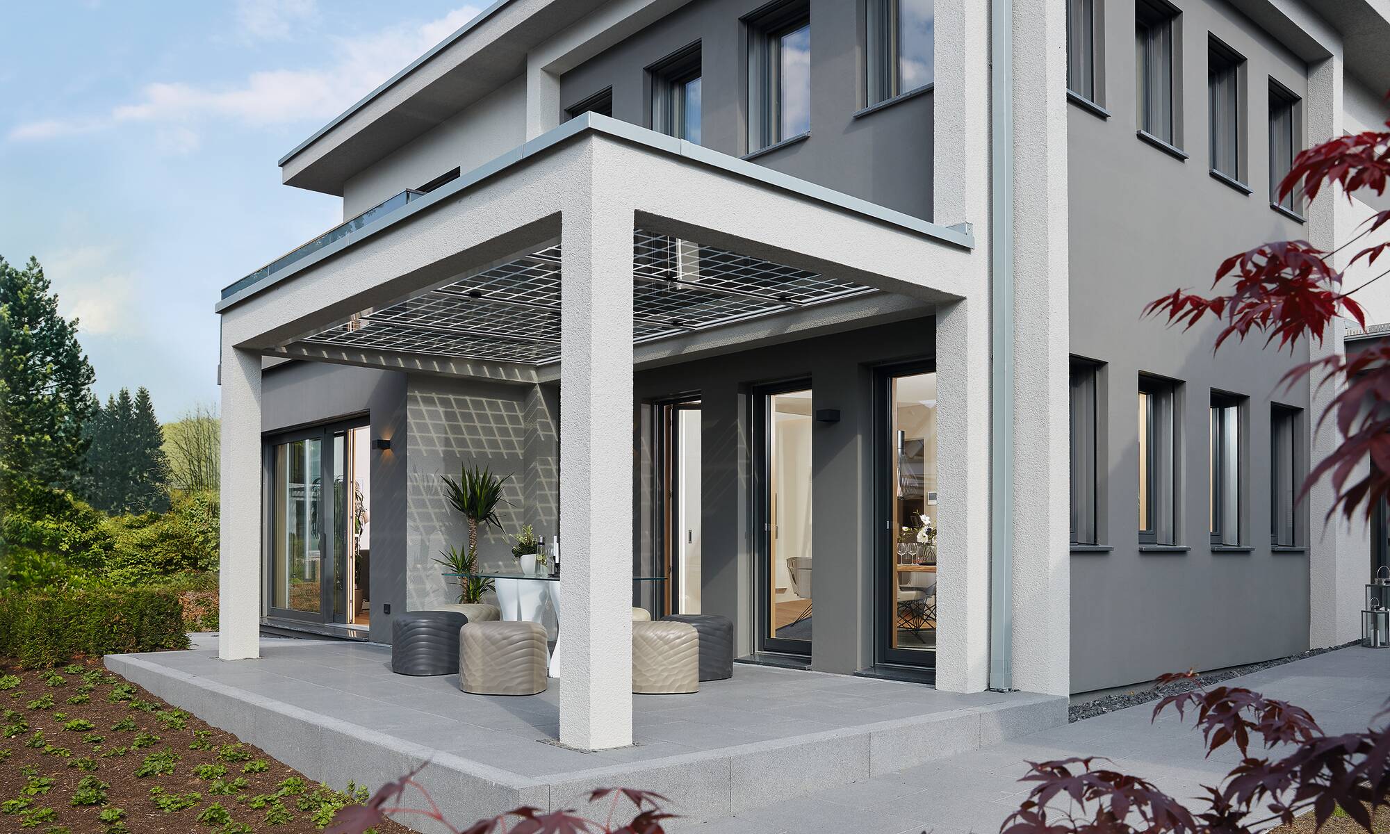 Dieses Einfamilienhaus im Fellbacher Musterhauspark vereint Gegensätze – außen gerade Linien, kubische Formen und kühle Farben, innen gemütliche Wohnbereiche, heimelige Atmosphäre und warme Holzelemente. Neben diesem modernen und doch behaglichen Erscheinungsbild überzeugt die Stadtvilla zudem durch maximale Energieeffizienz und intelligente Haussteuerung.