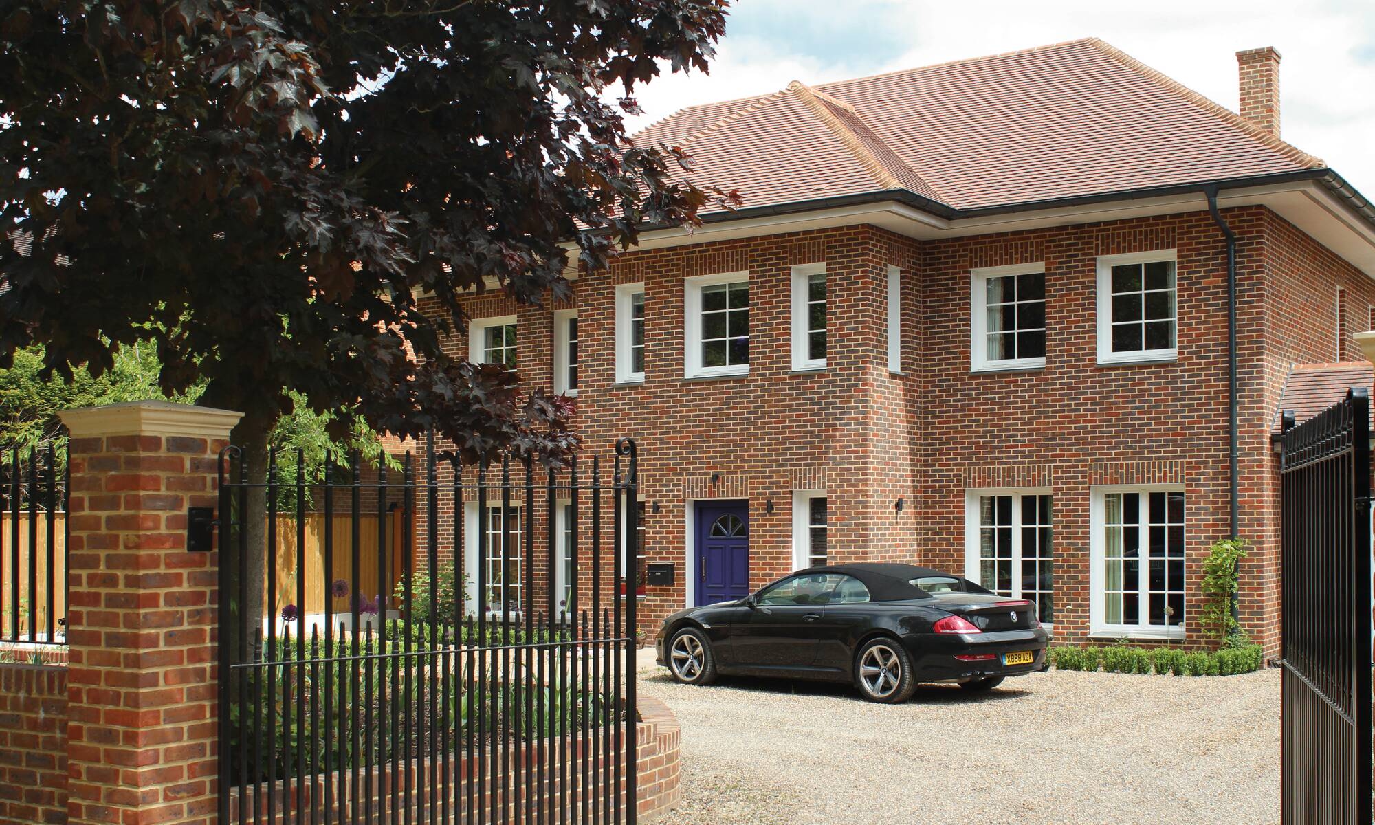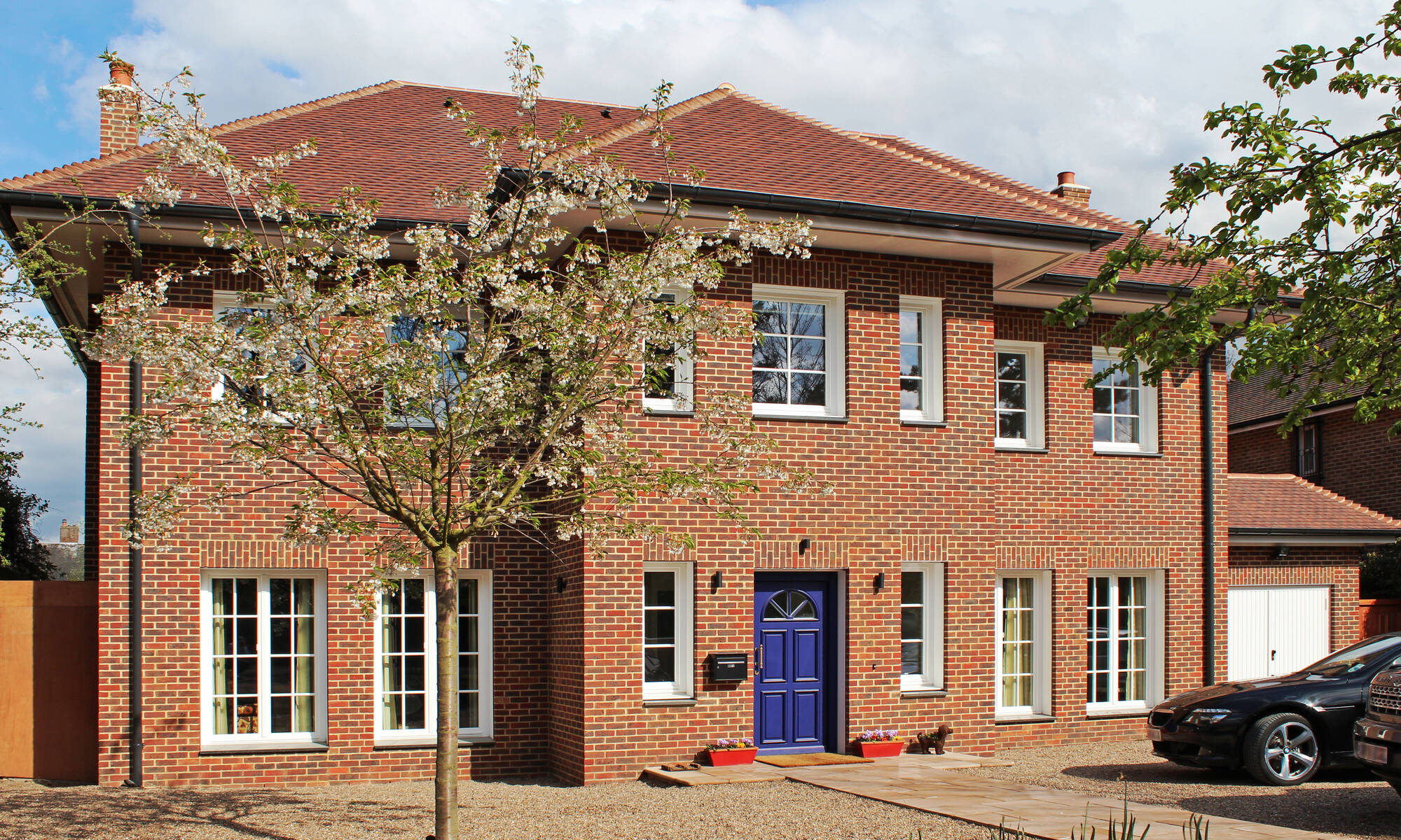Auch traditionelle Stile werden problemlos von WeberHaus verwirklicht: Dieses beeindruckende Eigenheim erfüllt alle erforderlichen Regeln des Denkmalschutzes vor Ort im Herzen von London. Die Fassade von dem zweieinhalb-geschossigen Architektenhaus besteht aus Klinker. Passend dazu entschied man sich für weiße Sprossenfenster. Das Innere spiegelt das Äußere wider – hohe Decken, dekorative Gesimse, hohe Sockel und eine georgianische Treppe in Maßanfertigung kleiden die Räume in herrschaftlichem Look.
