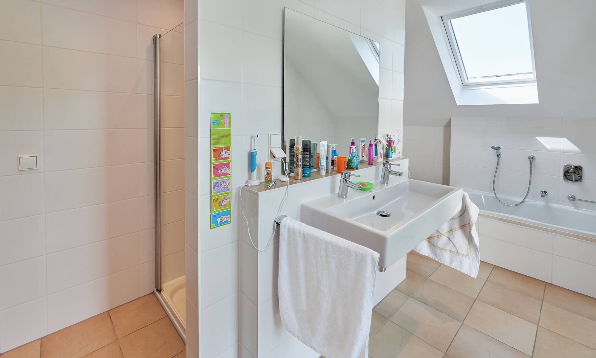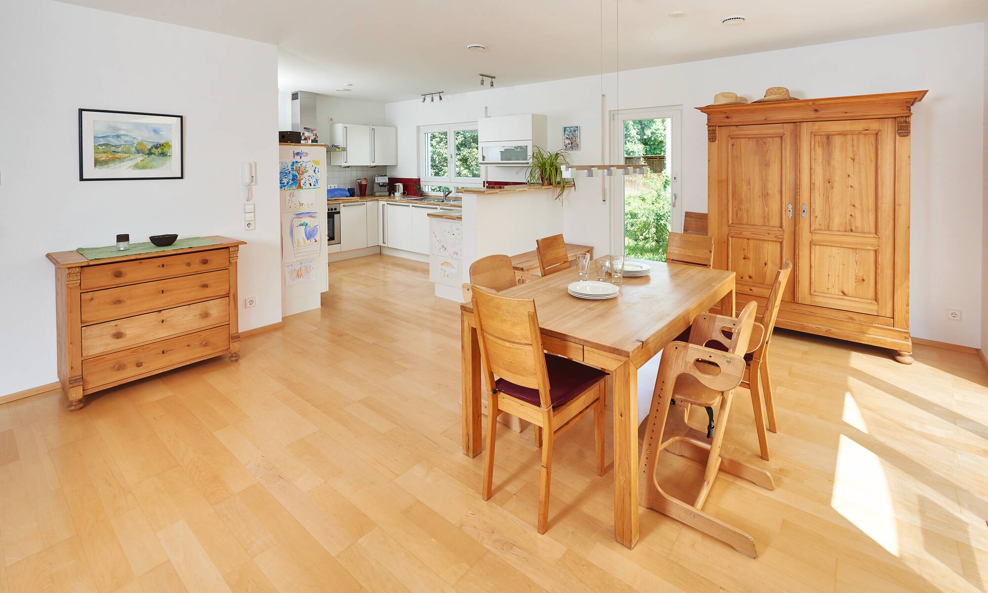 Für die Bauherrenfamilie stand immer schon der Wunsch nach einem ökologischen und energieeffizienten Haus im Vordergrund. So fanden sie bei WeberHaus den idealen Partner für ihr Unterfangen. „Mit viel Holz zu leben, das war immer unser Traum. Nun haben wir es immer um uns, in Form der Verschalung, der Bodenbeläge und natürlich der Wand an sich“, erzählt der Bauherr. Der Nachwuchs freut sich über so viel wohngesunde Natürlichkeit und die Eltern wissen, dass die Photovoltaik-Anlage auf dem Satteldach ihres individuell geplanten Hauses ein echtes Energiewunder ist.