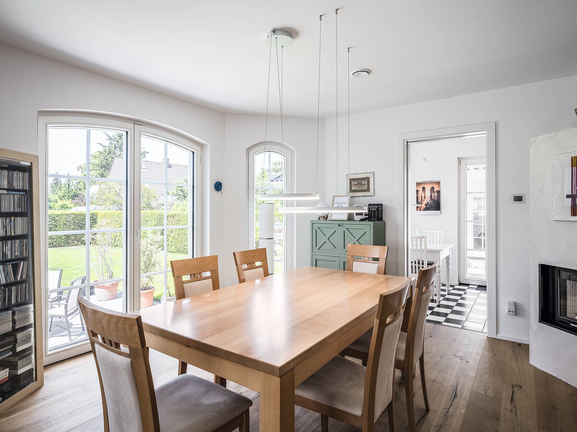 Kompakt, komfortabel und auf ganzer Linie effizient: Dieses frei geplante Einfamilienhaus bietet alles, was Paare, Singles und kleinere Familien zum Leben und Wohlfühlen brauchen. Die weißen Sprossenfenster verleihen dem Gebäude zusammen mit dem halbrunden Erker auf der Gartenseite einen herrschaftlichen Charakter. Ein schönes Detail sind die beiden Säulen, die die Balkonüberdachung tragen. Was man auf den ersten Blick nicht erwartet: Die Villa misst gerade einmal 10 x 9 m und passt sich damit perfekt in das schmale Grundstück ein. Auf dem eleganten Walmdach erstreckt sich eine leistungsstarke Photovoltaikanlage mit insgesamt 16 Modulen.