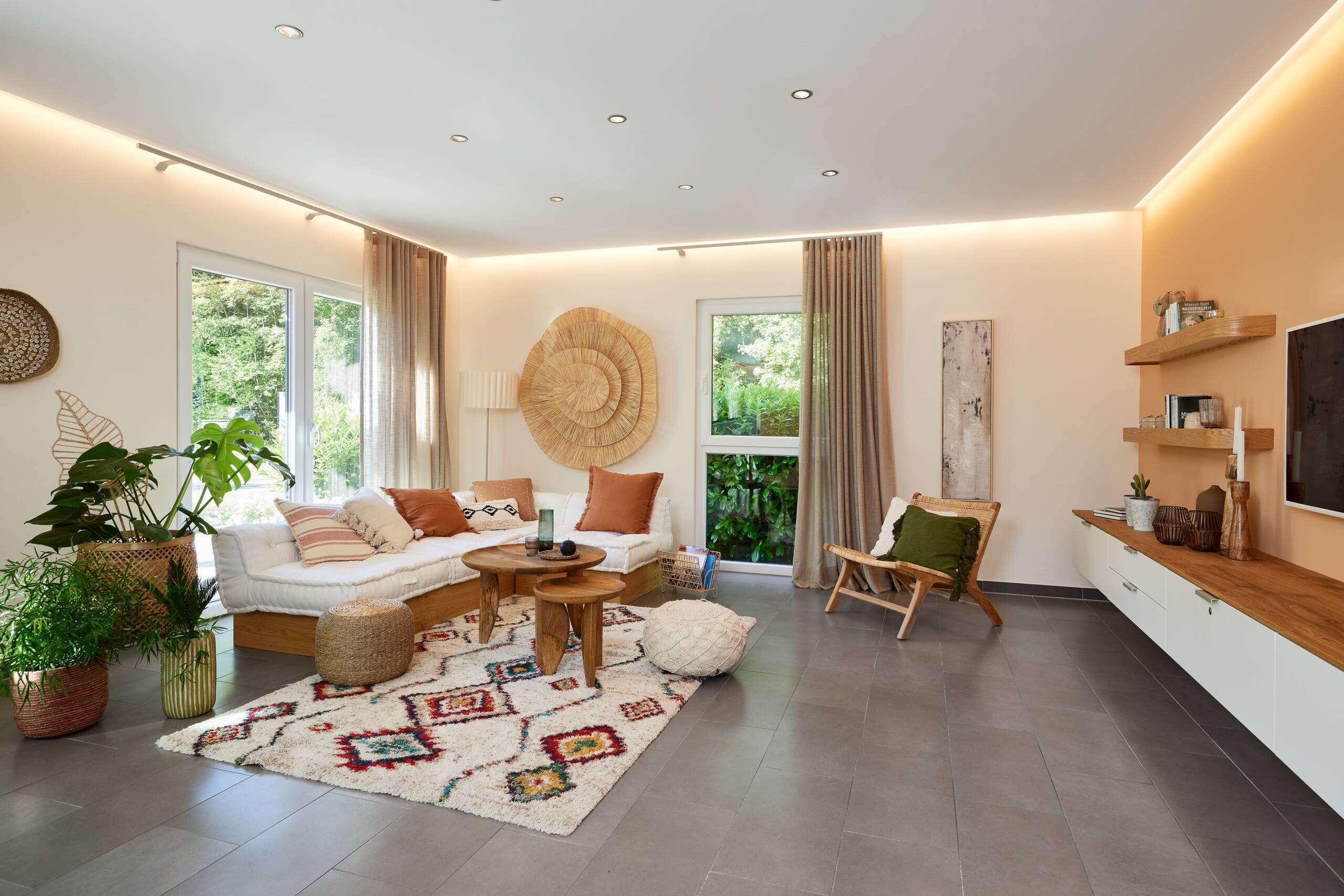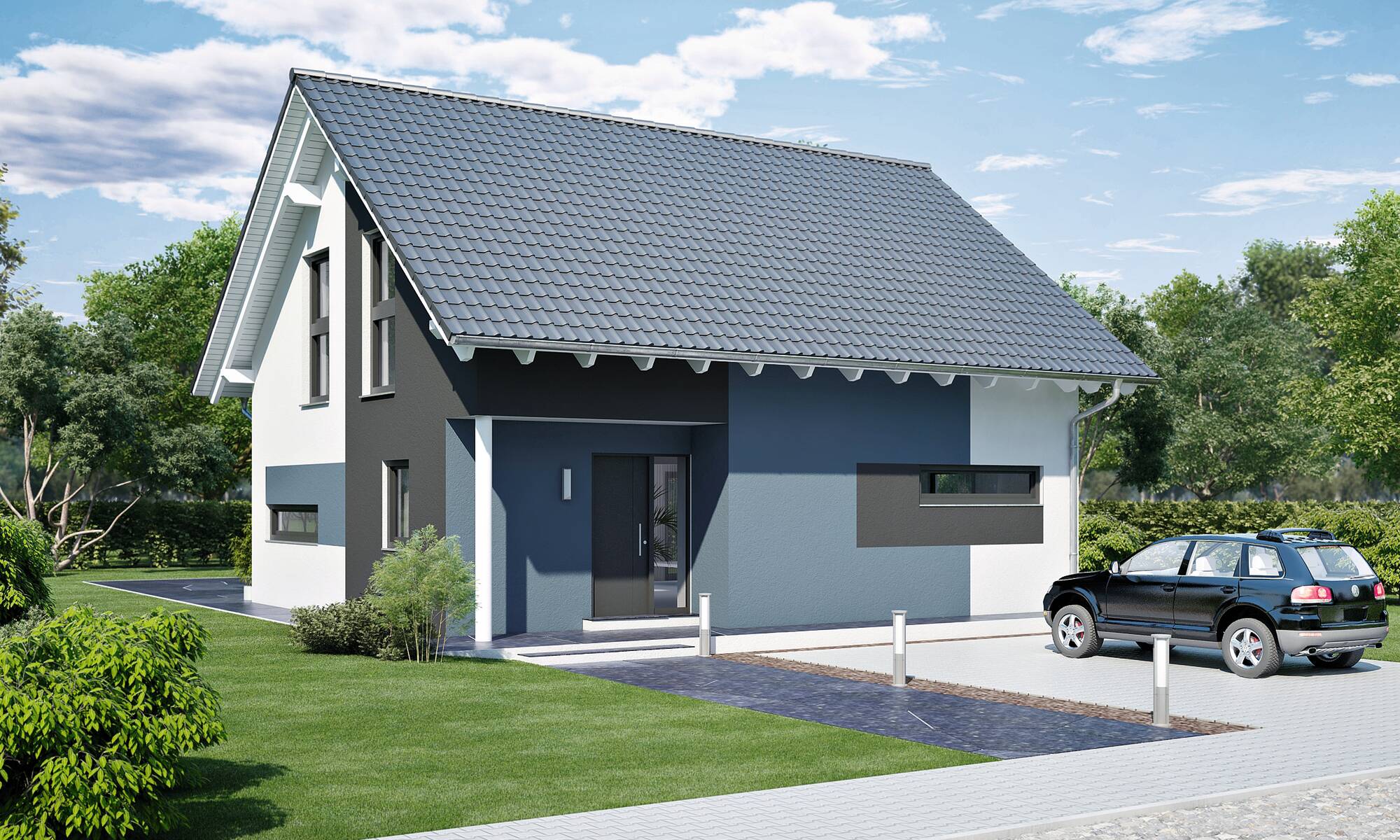 Dieses klassische Einfamilienhaus basiert auf der Baureihe generation5.5. Gekrönt wird das anderthalbgeschossige Haus von einem Satteldach mit sichtbaren Pfetten. Auch von innen kann sich der mit großzügigen 130 Quadratmetern „kleinste“ Entwurf der generation5.5-Familie sehen lassen. Die Grundrissgestaltung erfüllt alle Anforderungen an modernes Wohnen mit einem oder zwei Kindern.