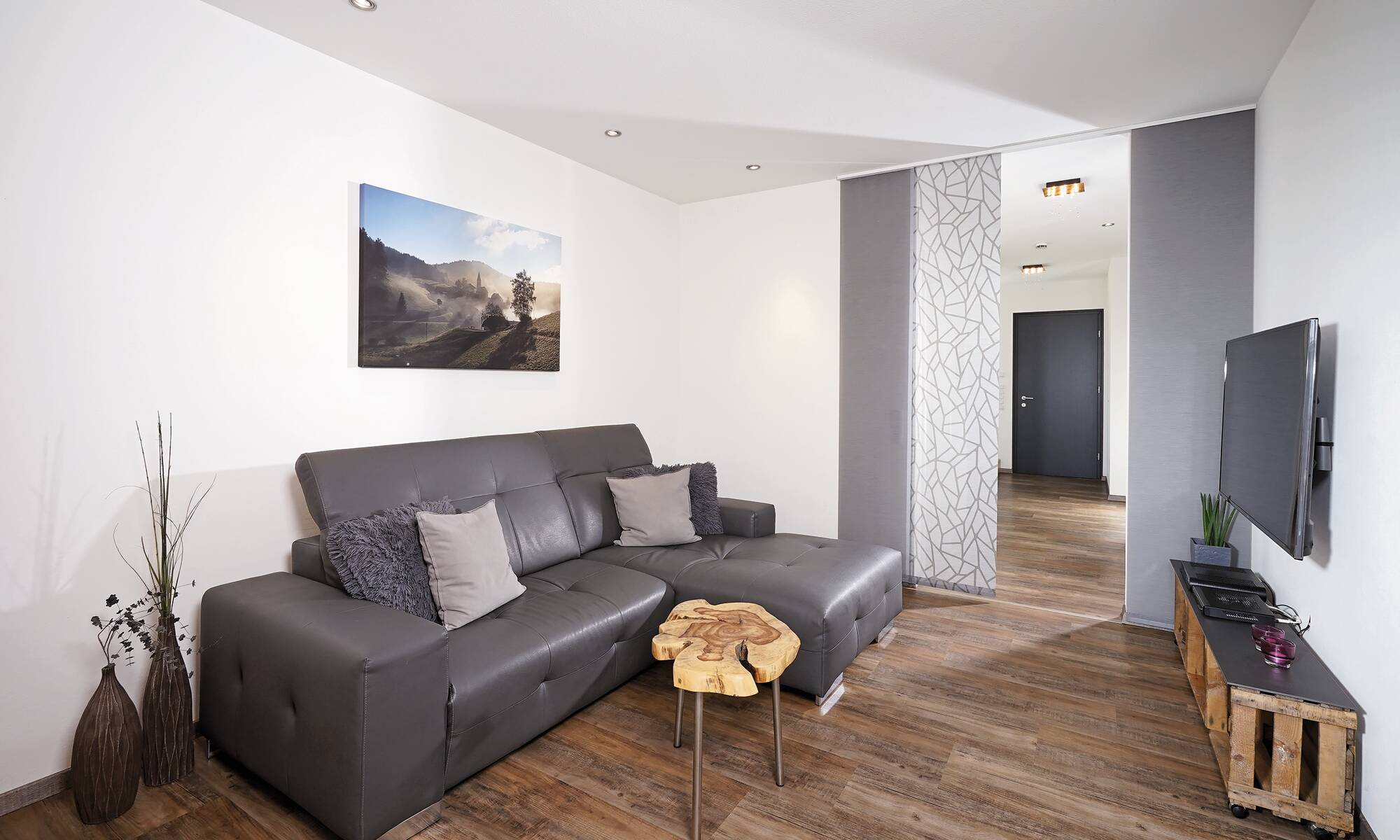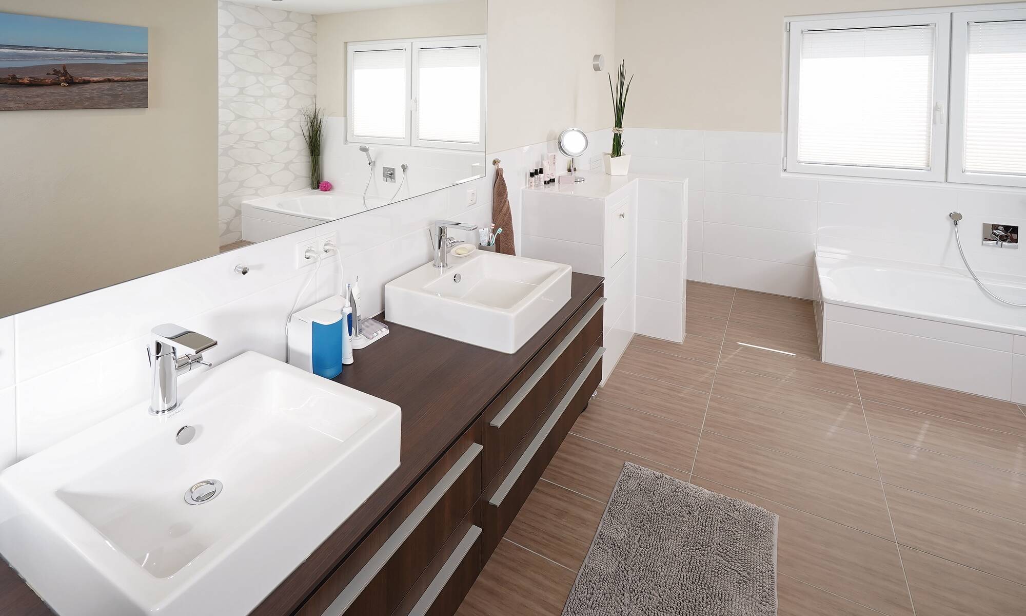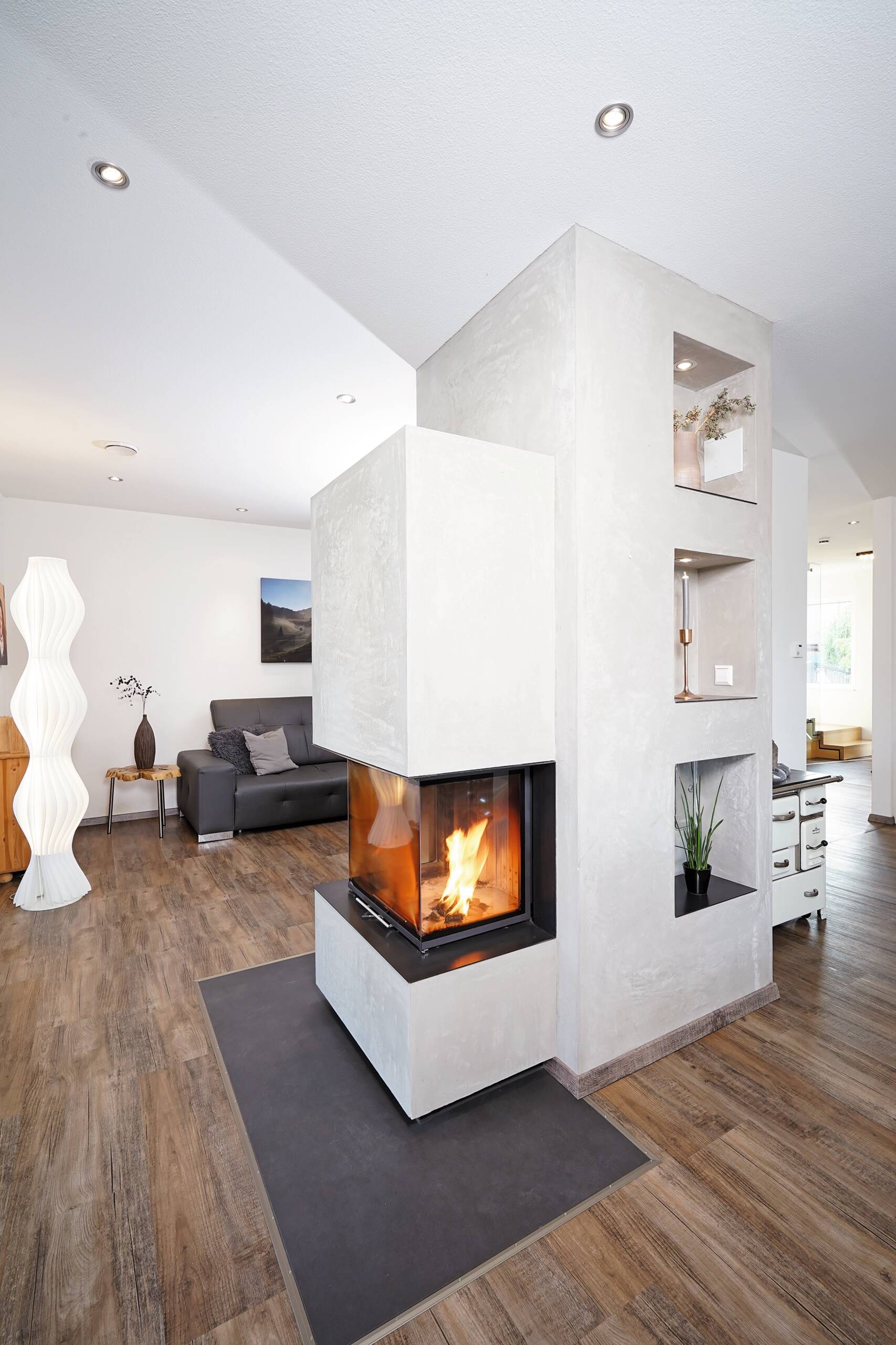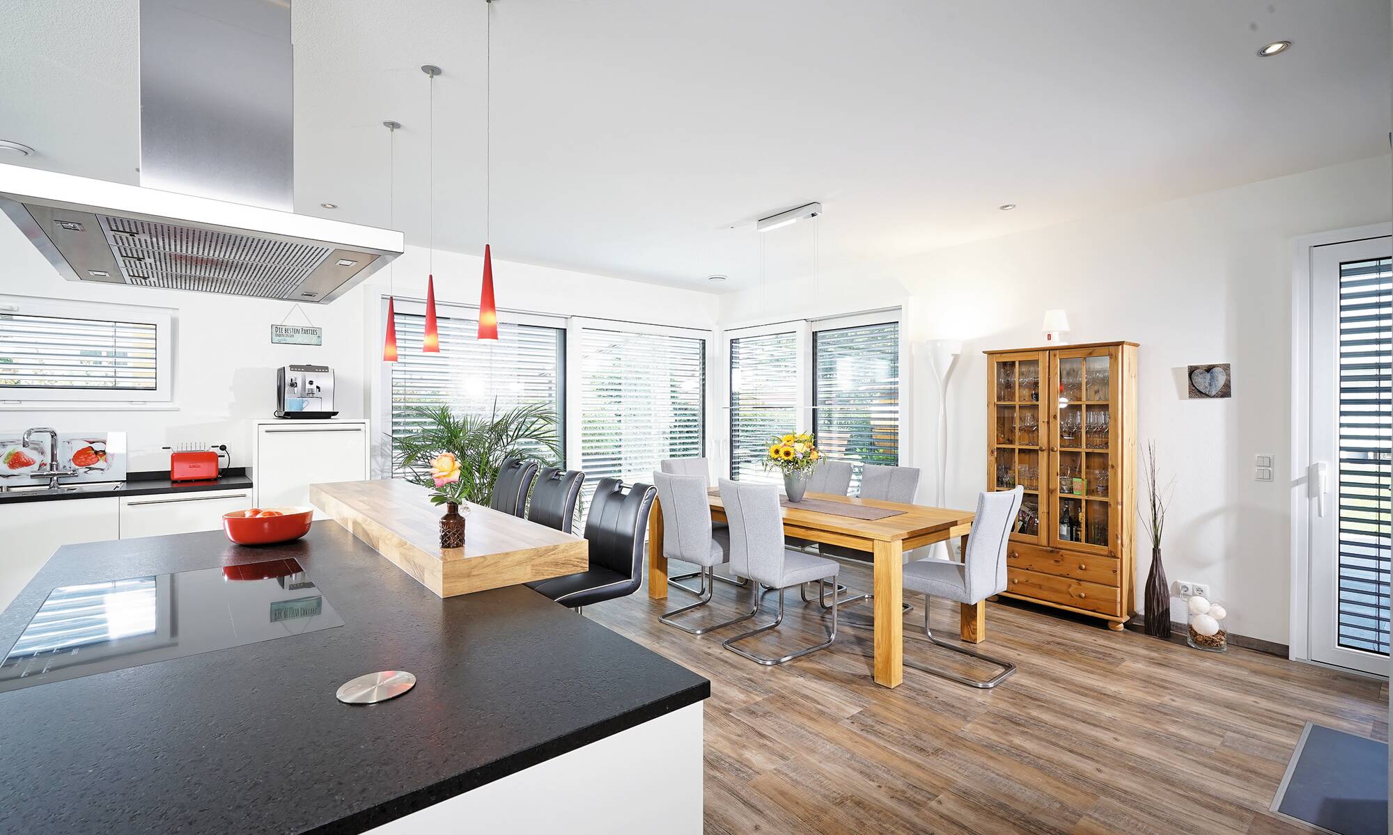 Klare Linien und Formen bestimmen dieses frei geplante Architektenhaus mit Flachdach. Abgesehen von den anthrazit gerahmten Fenstern überwiegt die Farbe Weiß. Während zur Straßenseite kleine Fenster eingefügt wurden, öffnet sich das Stadthaus zum Garten mit großen Fensterfronten. Die Wohnfläche von rund 230 Quadratmetern verteilt sich auf zwei Vollgeschosse.