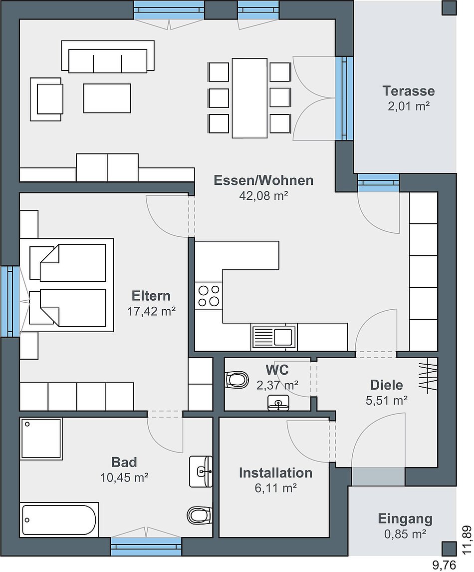 9,76 x 11,89 m