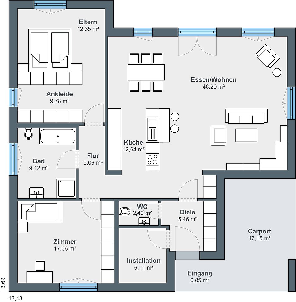 Für einen Bungalow sprechen viele Gründe: Komfort, Barrierefreiheit oder auch die vielfältigen architektonischen Gestaltungsmöglichkeiten.Die Bungalows aus der Baureihe myLife werden in verschiedenen Hausgrößen angeboten und können auf Wunsch barrierefrei und auch mit Einliegerwohnung gestaltet werden.