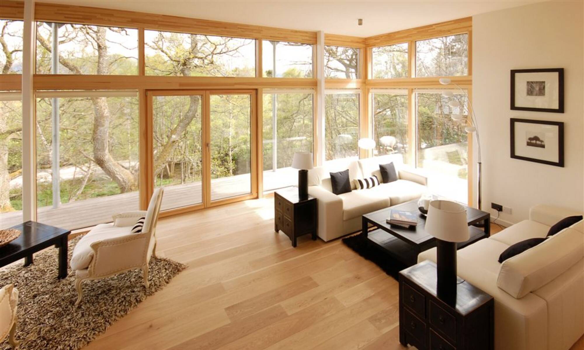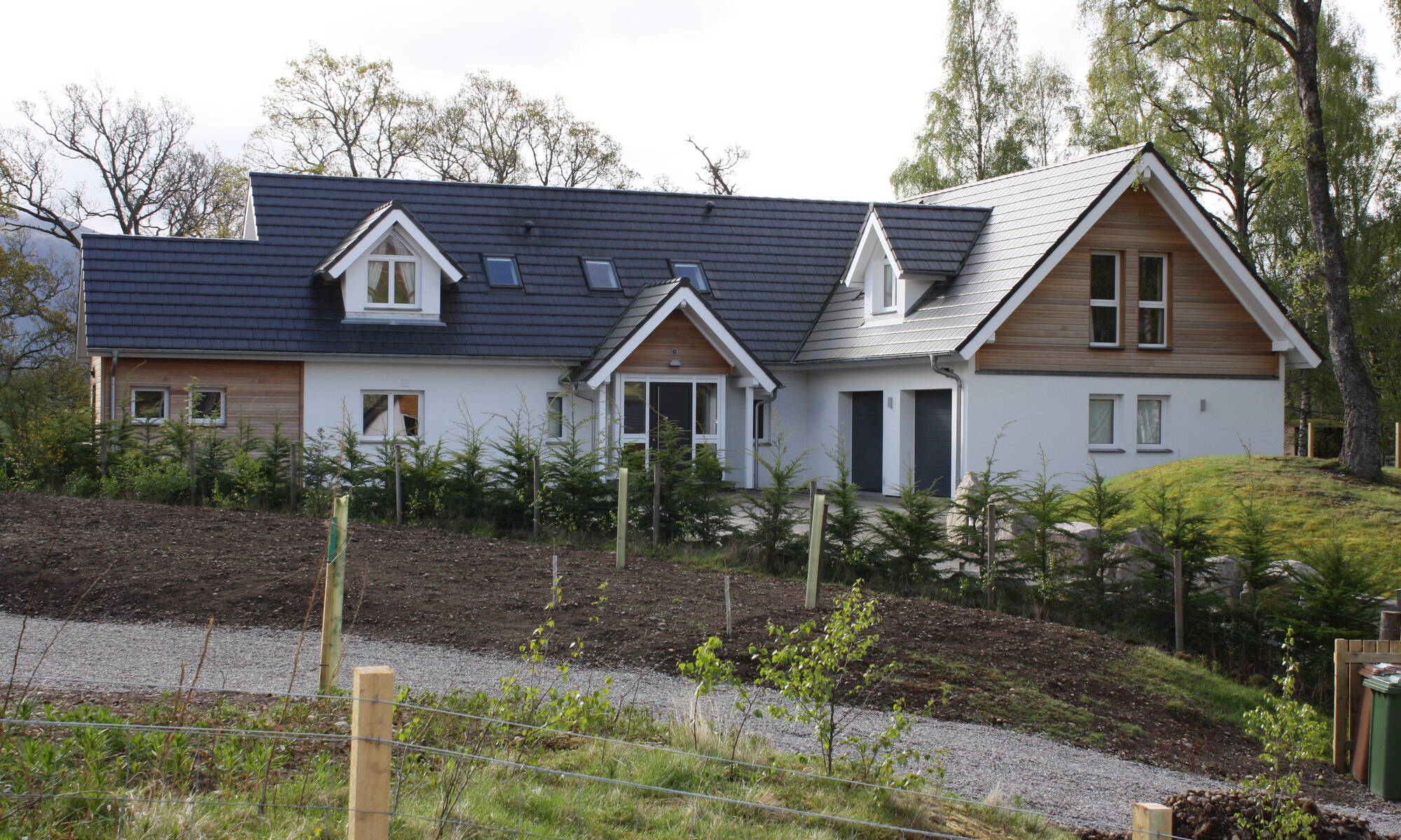 Das einladende Anwesen bietet durch große Glasflächen wunderschöne Ausblicke auf den Cairngorms Nationalpark. Teils holzverschalt, teils verputzt lädt das frei geplante Architektenhaus zum Verweilen und Entspannen ein. Zahlreiche Gauben öffnen den Wohnraum unter dem Dach zusätzlich. Im Inneren des Hause sorgen Parkettböden, Fenster- und Türrahmen aus Holz sowie warme Farben für eine gemütliche Atmosphäre.