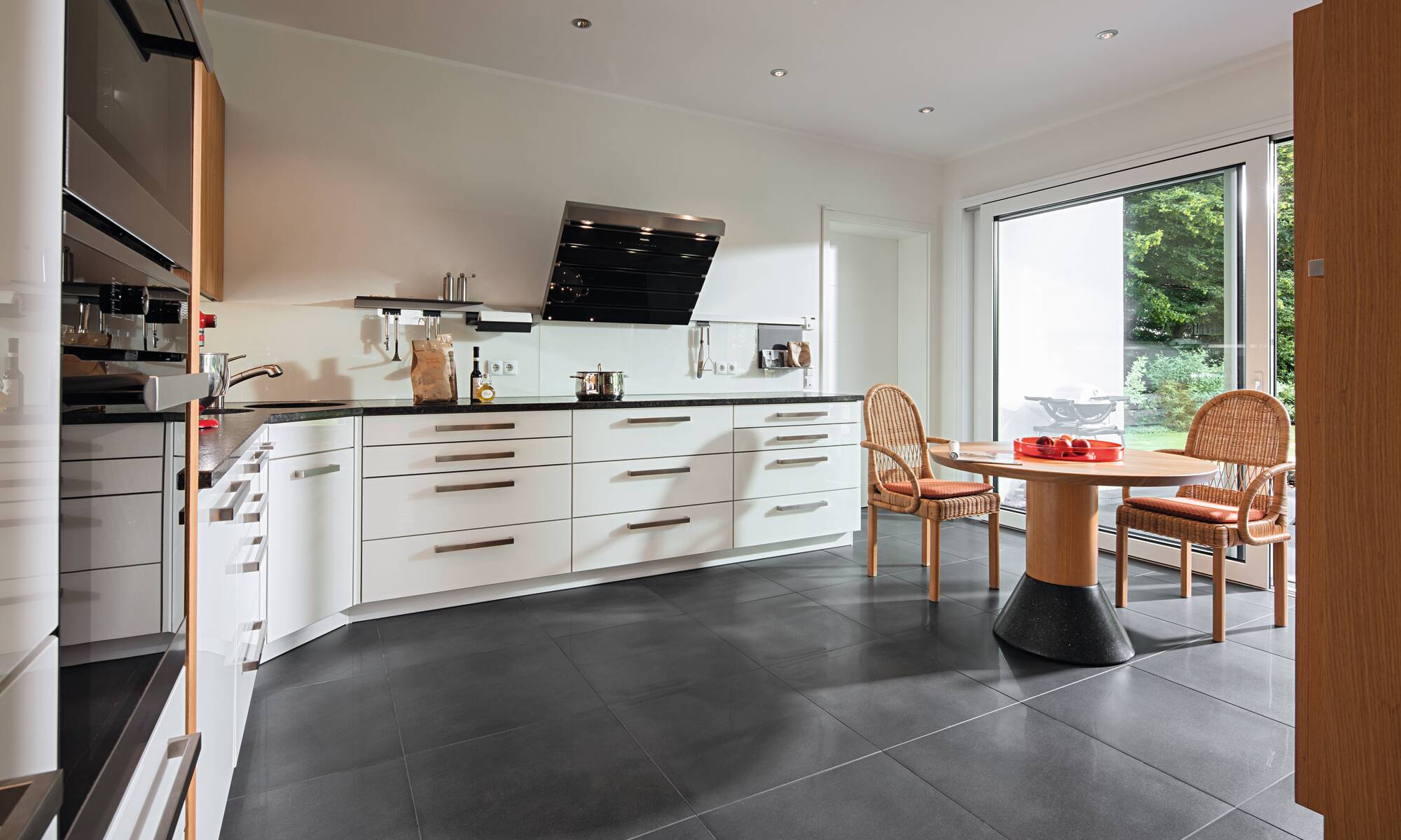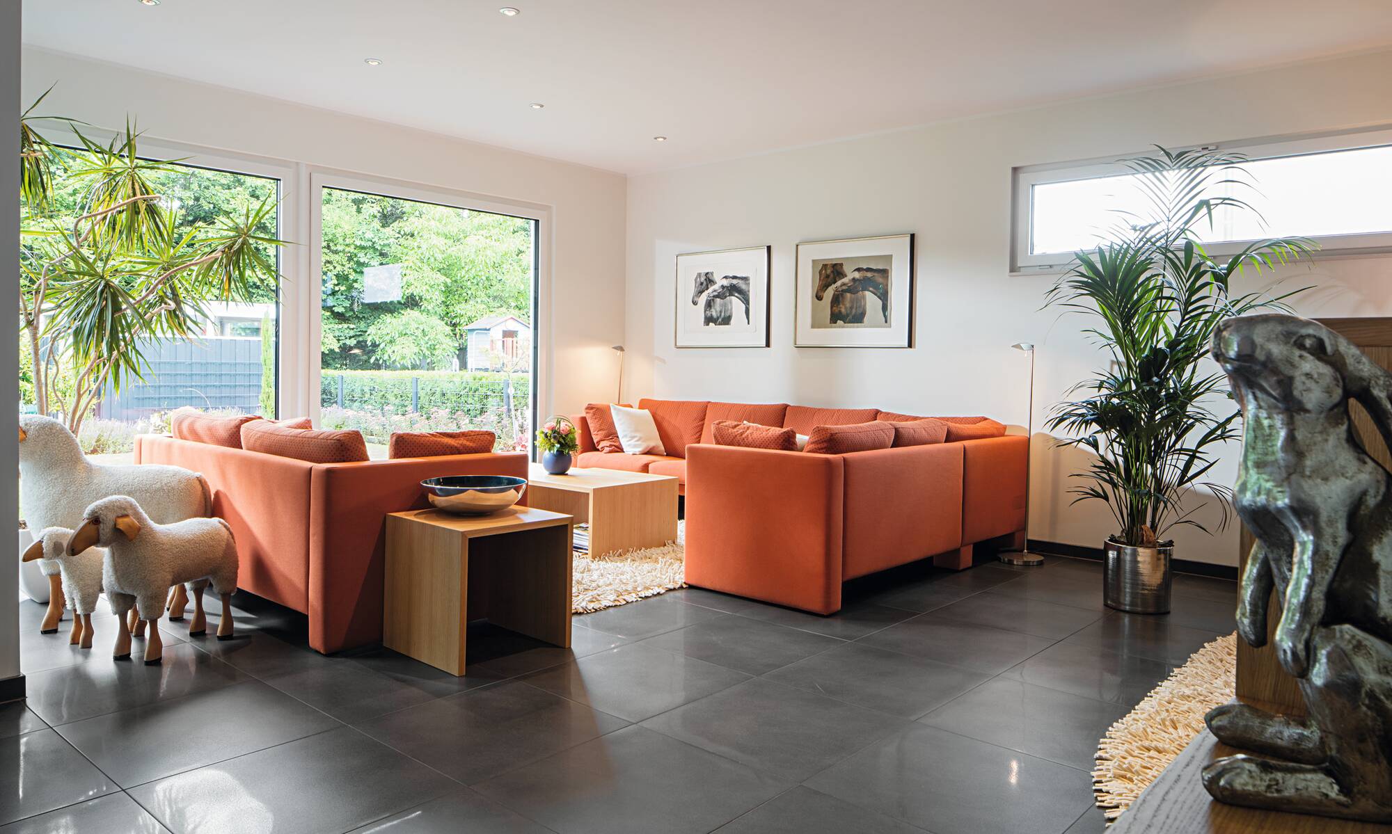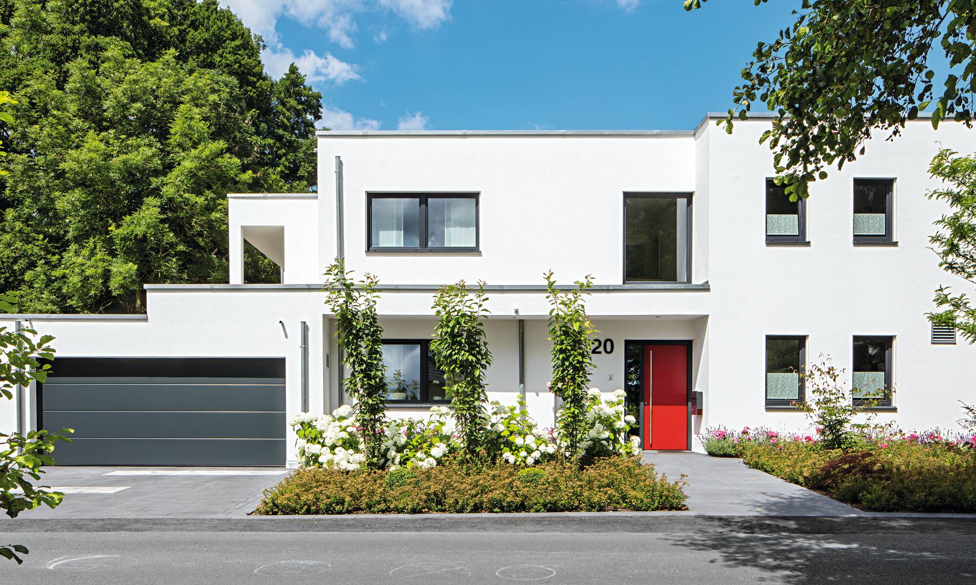 Klar in der Bauweise, ohne viel Schnörkel präsentiert sich dieses Architektenhaus mit viel Glas. Bei der Planung hatte das Bauherrenpaar aus dem Münsterland konkrete Vorstellungen. Es sollte ein Haus für die Zeit nach dem Auszug der Kinder sein. Praktisch denken, aber gleichzeitig ästhetisch, lautete die Devise. Ein modernesTraumhaus im Bauhaus-Stil ist entstanden.