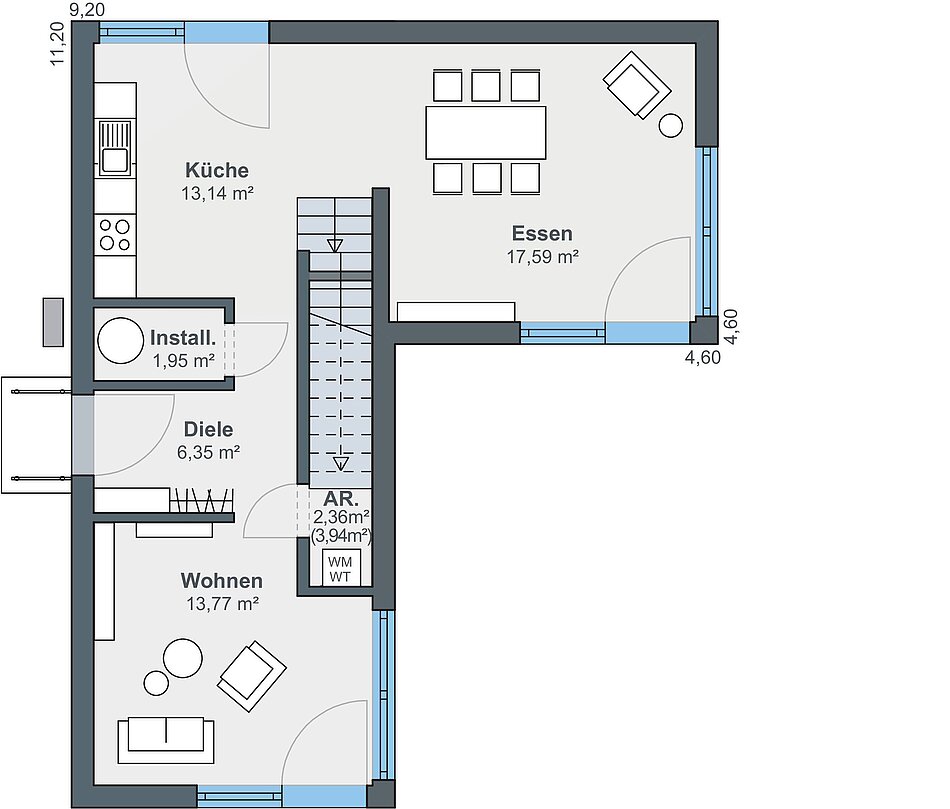 Dieser Entwurf aus der Baureihe OPTION präsentiert eine zweigeschossige Variante mit praktischem Anbaumodul, das neben dem Essbereich oder optional neben der Küche platziert werden kann. Wie alle Häuser dieser Reihe überzeugt es durch klare Linien und minimalistische Architektur, die sich auf das Wesentliche konzentriert. Die edle Holzfassade strahlt Ruhe und Wärme aus, während die großzügigen Fenster lichtdurchflutete Räume schaffen. Perfekt für Singles oder Paare, bietet das zweigeschossige Haus mit Anbaumodul ein durchdachtes Raumkonzept mit einem geräumigen Schlafzimmer und einem separaten Home-Office. Der funktionale Grundriss und das klare Design schaffen eine harmonische Atmosphäre – ohne überflüssigen Ballast, dafür mit Fokus auf Komfort und moderne Eleganz.