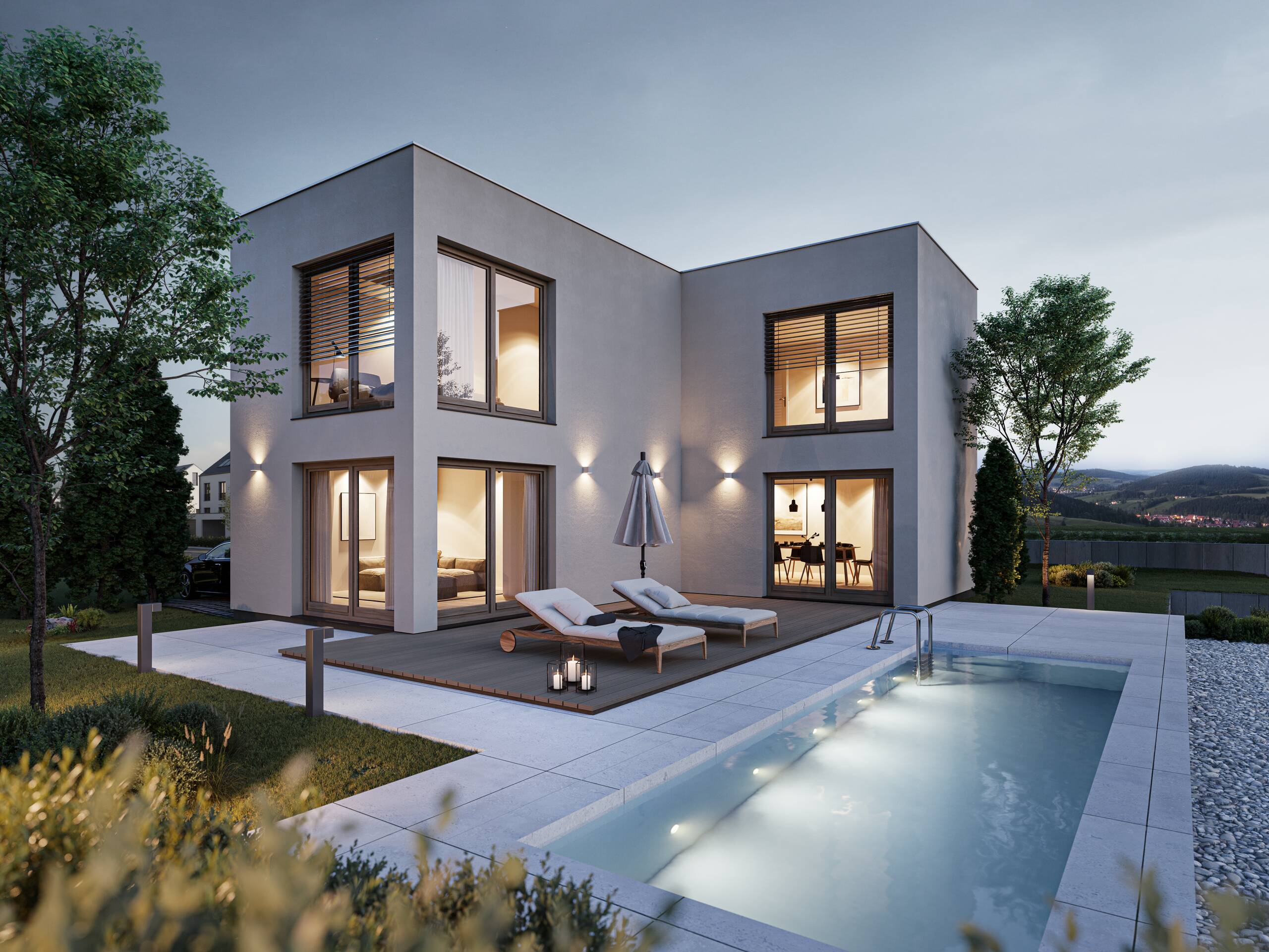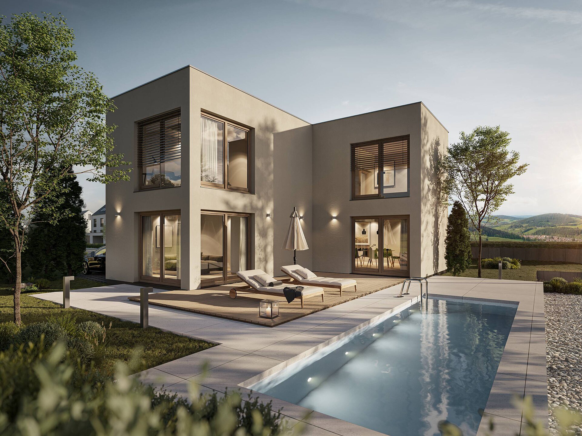 WeberHaus Option, zweigeschossig, inkl. Bodenplatte und Putzfassade. Basis der genannten Preise ist die derzeit gültige Bau- und Ausstattungsbeschreibung.