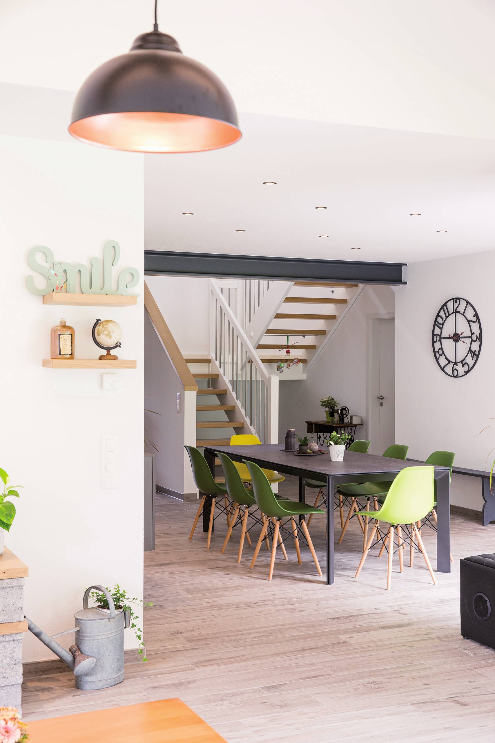Das individuell geplante Wohlfühlhaus mit Walmdach ist für die Bauherren ihr absolutes Traumhaus. „Wenn wir eines Tages ausziehen sollten, würden wir ohne zu zögern WeberHaus bitten, uns das gleiche Haus nochmal zu bauen“, erzählt der Familienvater. Auf zwei Vollgeschossen erstrecken sich etwa 200 Quadratmeter Wohnfläche.