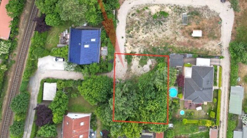 Das Grundstück liegt in einer Kurve und ist 626 m² groß inkl. Anteil an einer Privatstr.