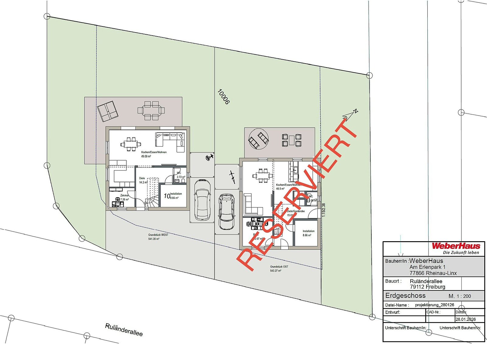 Die beiden projektierten Einfamilienhäuser bieten jeweils ca. 165 m² Wohnfläche in moderner, zweigeschossiger Bauweise. Die Grundrisse sind frei planbar und können individuell an die Bedürfnisse der künftigen Eigentümer angepasst werden – ideal für Familien, Paare oder anspruchsvolle Eigennutzer. Großzügige Wohn- und Essbereiche, helle Räume und eine klare Architektur schaffen ein zeitgemäßes Wohngefühl mit hoher Aufenthaltsqualität.