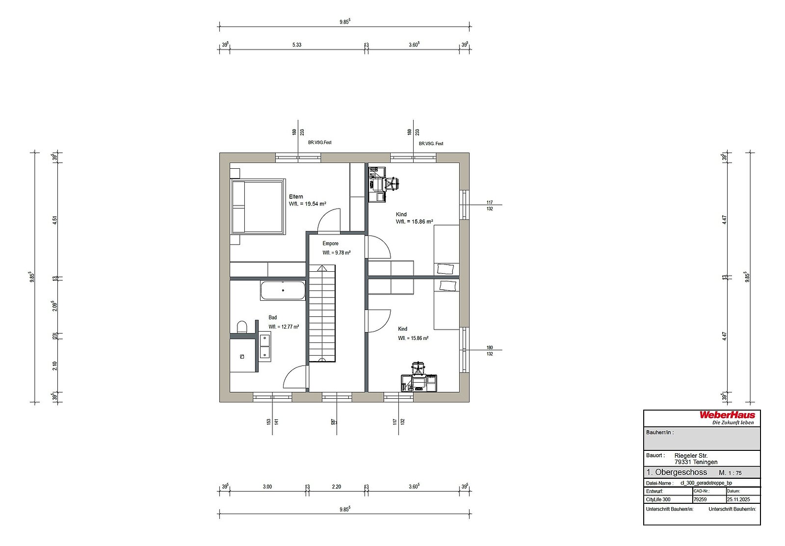Die Immobilie überzeugt mit einem klar strukturierten Grundriss: Im Erdgeschoss befindet sich ein großzügiger Wohn- und Essbereich mit offener Küche und direktem Zugang zum privaten Garten, der bewusst abgewandt von der Straße liegt und viel Privatsphäre bietet. Ergänzt wird das Erdgeschoss durch ein Gäste-WC und einen Hauswirtschaftsraum. Im Obergeschoss befinden sich flexibel planbare Schlafbereiche für Eltern und Kinder sowie ein modernes Familienbad – die Grundrissgestaltung kann nach Käuferwunsch individuell angepasst werden, um persönlichen Wohnbedürfnissen gerecht zu werden. Die Ausstattung entspricht dem hochwertigen WeberHaus-Standard und umfasst unter anderem eine Luft-Wärmepumpe, Fußbodenheizung, große Fensterflächen, energieeffiziente Bauweise, wohngesunde Materialien sowie eine moderne Sanitärausstattung. Im Kaufpreis enthalten sind zudem eine hochwertige Einbauküche, ein Carport sowie sämtliche Kaufnebenkosten.